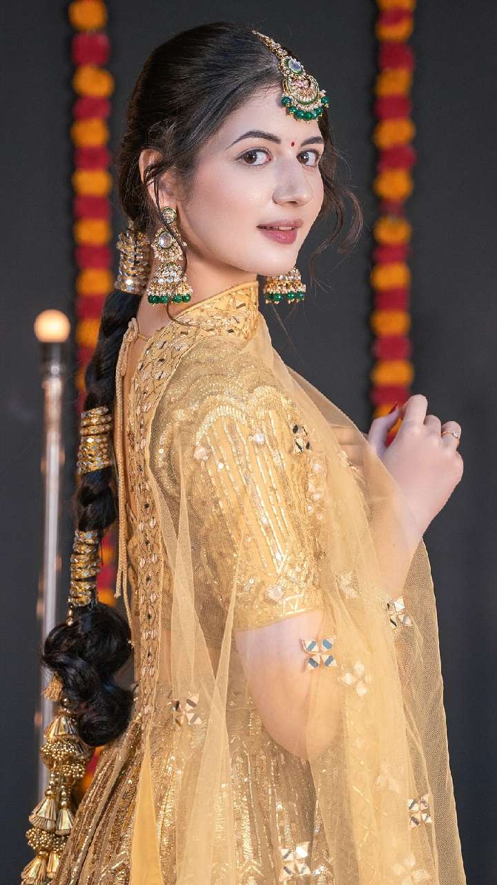 एक्ट्रेस ने हैवी लहंगे में खूबसूरत लुक के लिए लंबे बालों में ब्रेड बनाकर स्टाइलिश परांदा लगाया है, जो काफी अट्रैक्टिव लुक दे रहा है। आप भी ऐसे हेयर स्टाइल को बना सकती हैं।