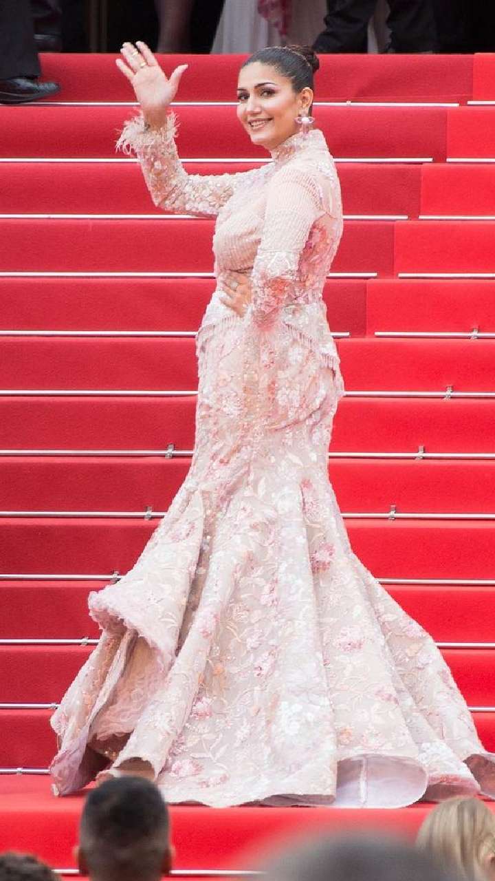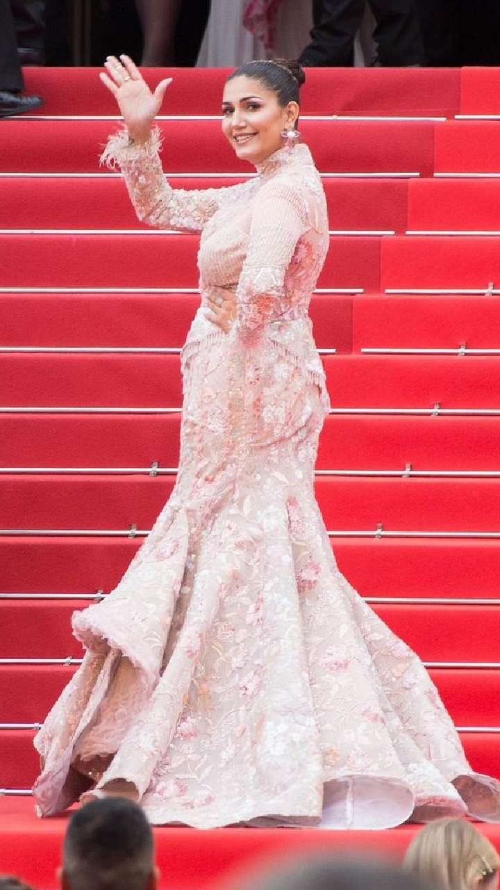 पिंक कलर के एम्ब्रॉयडर्ड गाउन में सपना का रेड कार्पेट पर ग्लैमरस लुक देख हर कोई हैरान रह गया।
