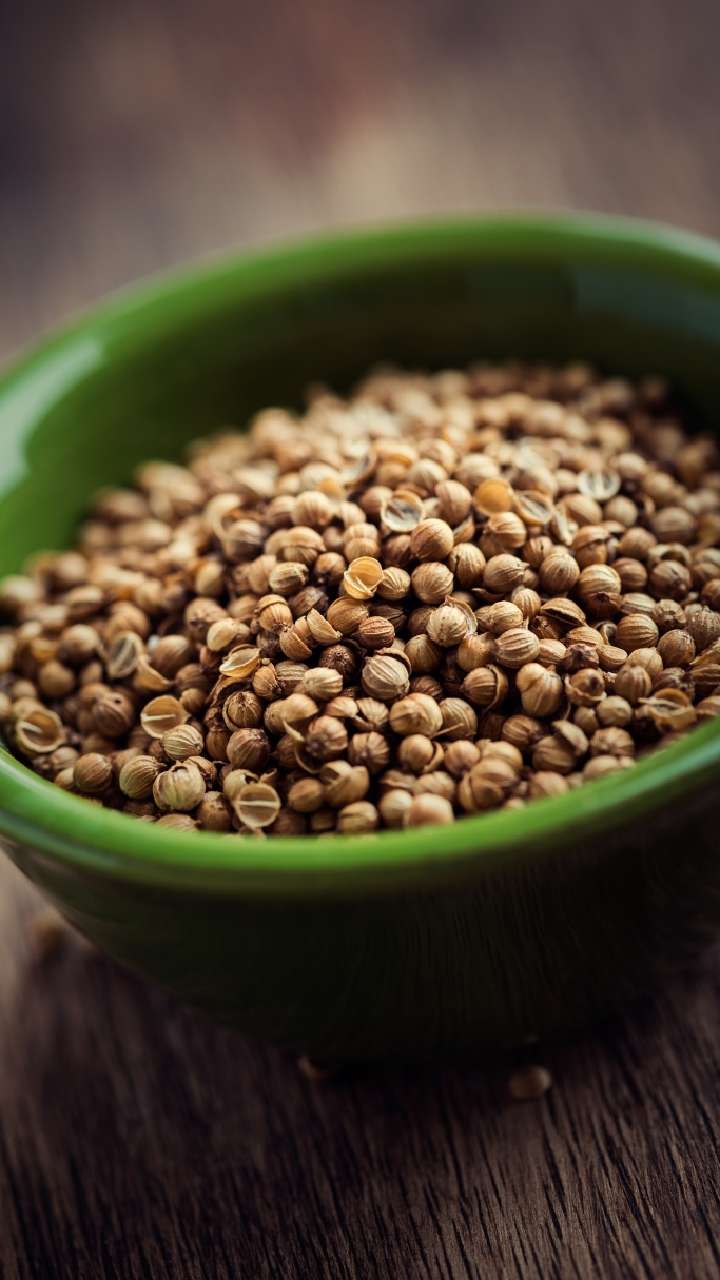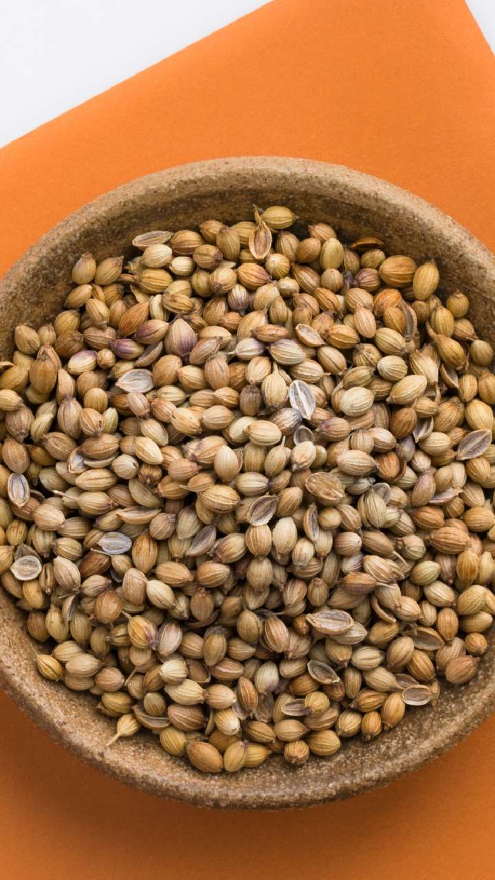 धनिए के बीज पोटेशियम, आयरन, मैग्निशियम, कैल्शियम, फोलिक एसिड, विटामिन-ए, विटामिन-के और विटामिन-सी भरपूर होते हैं। यह एक लोकप्रिय मसाला है।