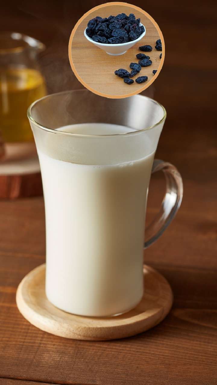 काली किशमिश और दूध दोनों में ही कैल्शियम होता है और कैल्शियम हड्डियों के लिए काफी अच्छा माना जाता है। आपको रोजाना दूध में भीगी काली किशमिश खानी चाहिए।
