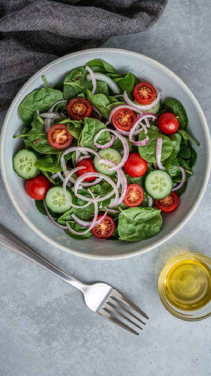 सलाद में फाइबर और एंटीऑक्सीडेंट्स से हृदय स्वास्थ्य बेहतर रहता है। यह ब्लड प्रेशर और कोलेस्ट्रॉल संतुलित रखने में मदद करता है।