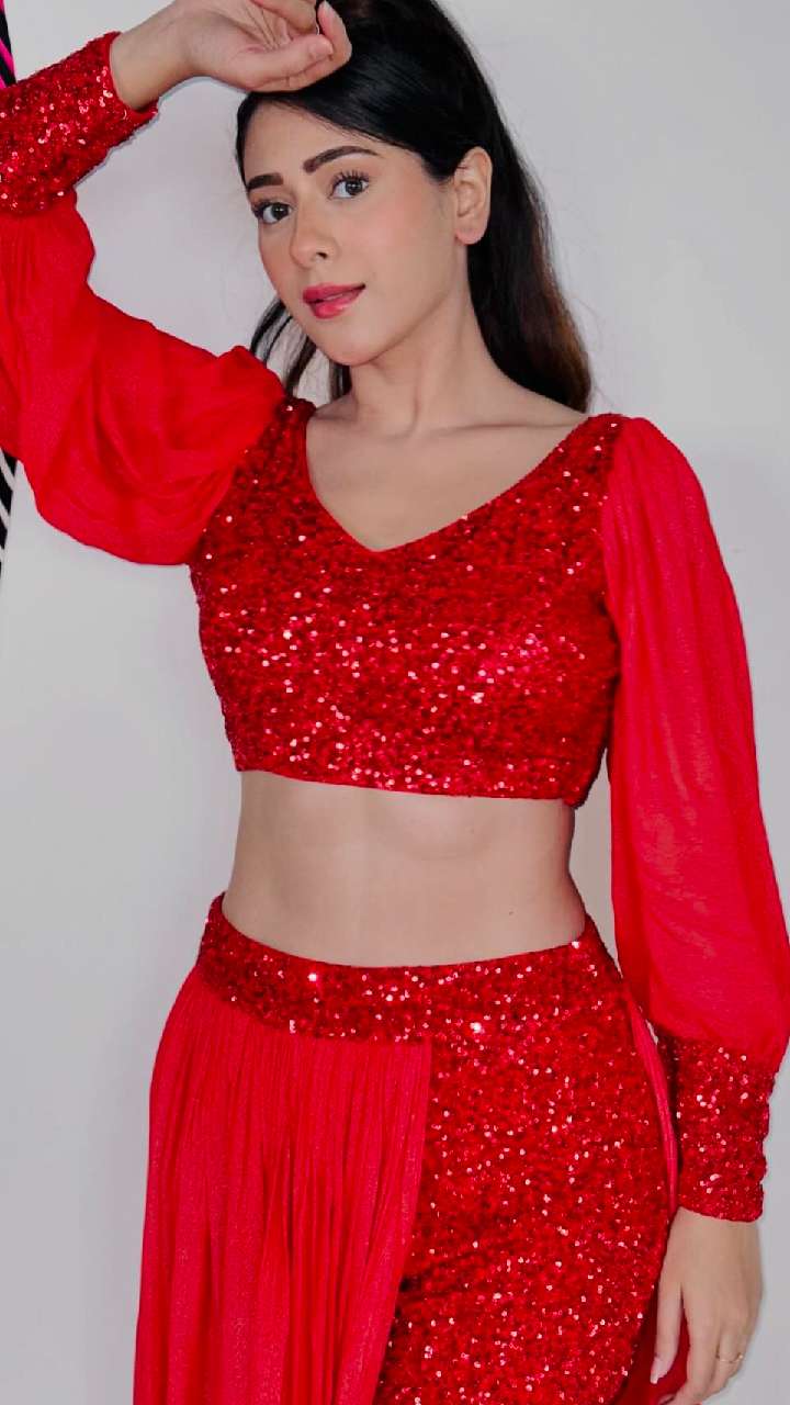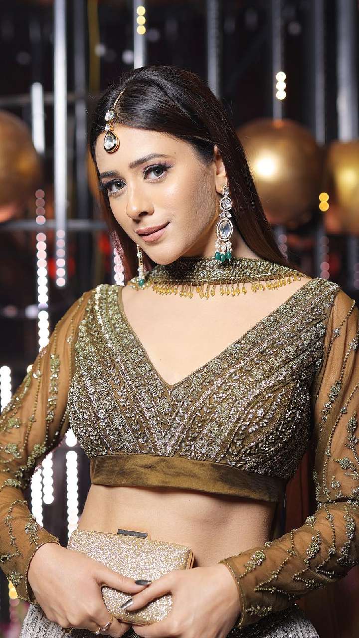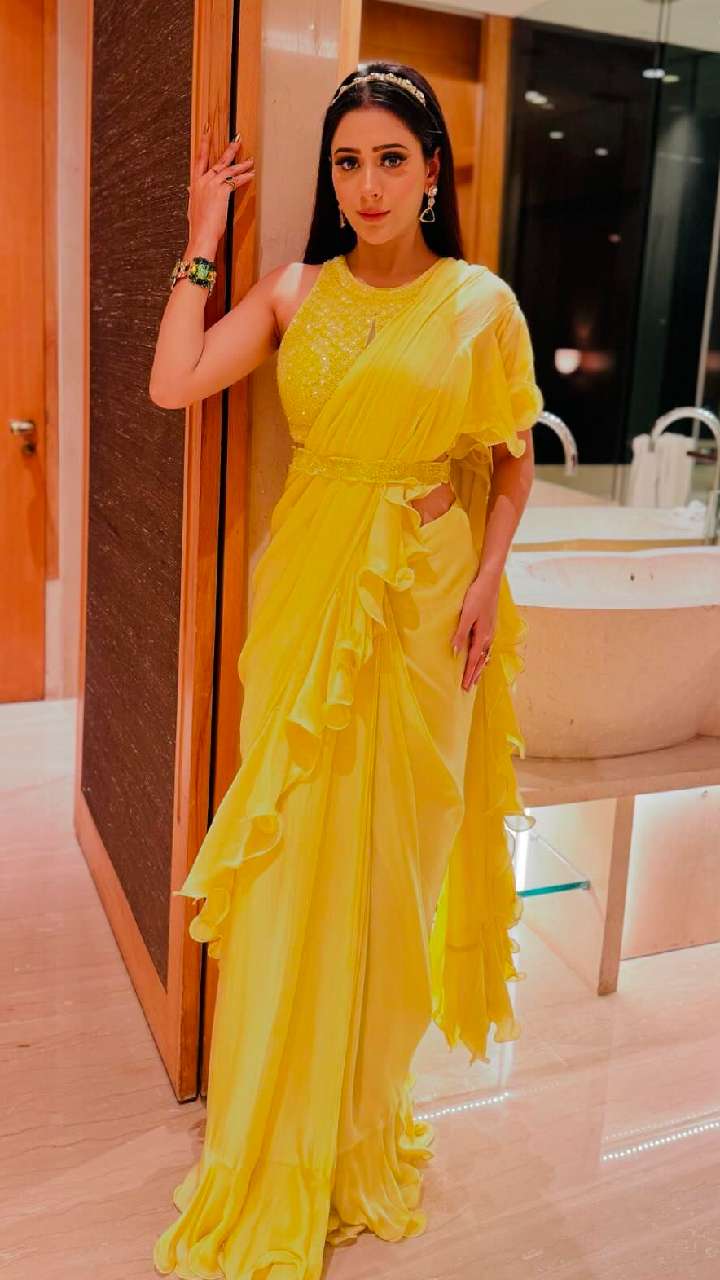 हिबा नवाब का ये लुक काफी ज्यादा स्टाइलिश लग रहा है। यू शेप ब्लाउज डिजाइन उनके इंडियन लुक में चार चांद लगा रहा है।
