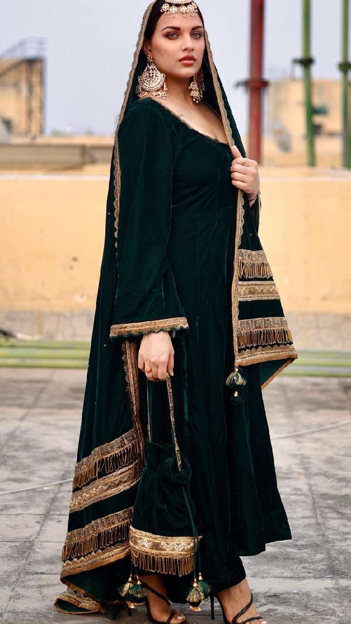 अगर आप किसी खास मौके पर कश्मीरी स्टाइल सूट पहनती हैं, तो बहुत खूबसूरत लगेंगी। इस तरह के सूट के साथ स्ट्रेट कट पैंट और वेलवेट की ही चुन्नी पहनें।