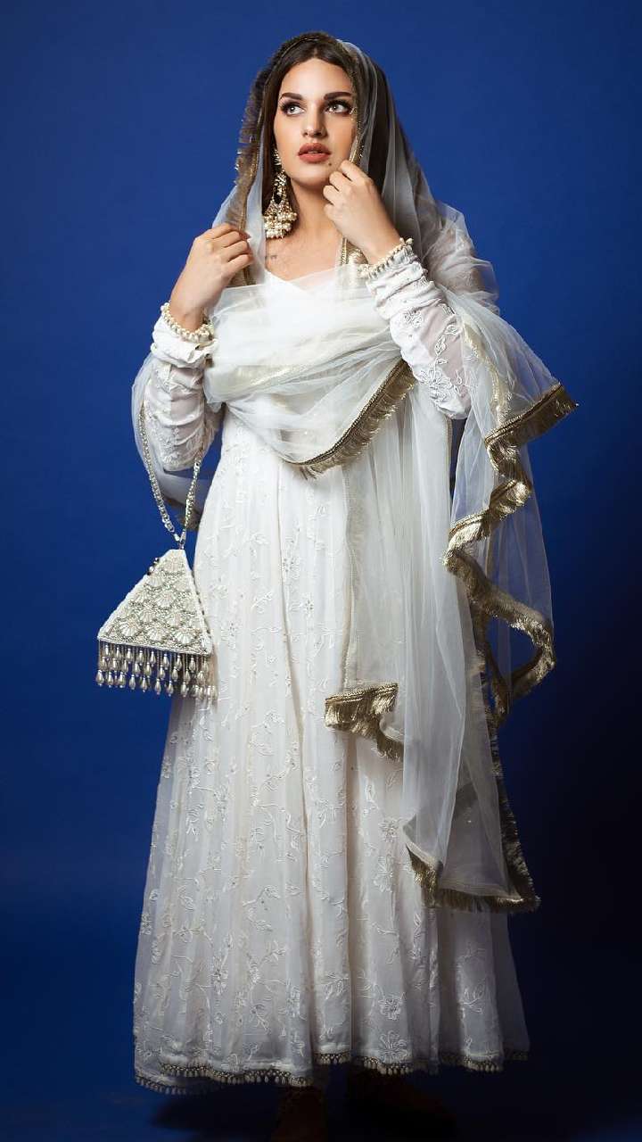 क्रीम कलर के अनारकली सूट में एक्ट्रेस एलीगेंट लग रही हैं। इस सूट को आप शादी या किसी खास मौके पर हैवी इयररिंग्स के साथ पहन सकती हैं।