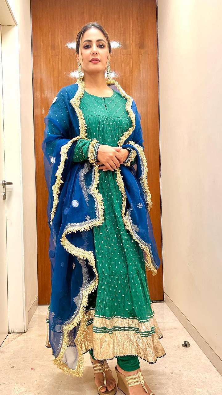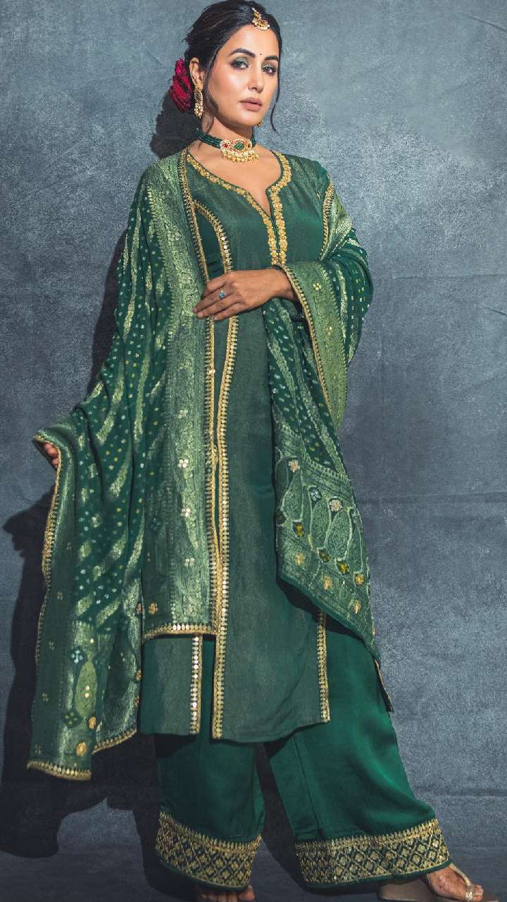 हिना का ये ग्रीन प्लाजो सूट लुक बेहद खूबसूरत है। इसको आप रक्षाबंधन के लिए सेट कर सकती हैं।