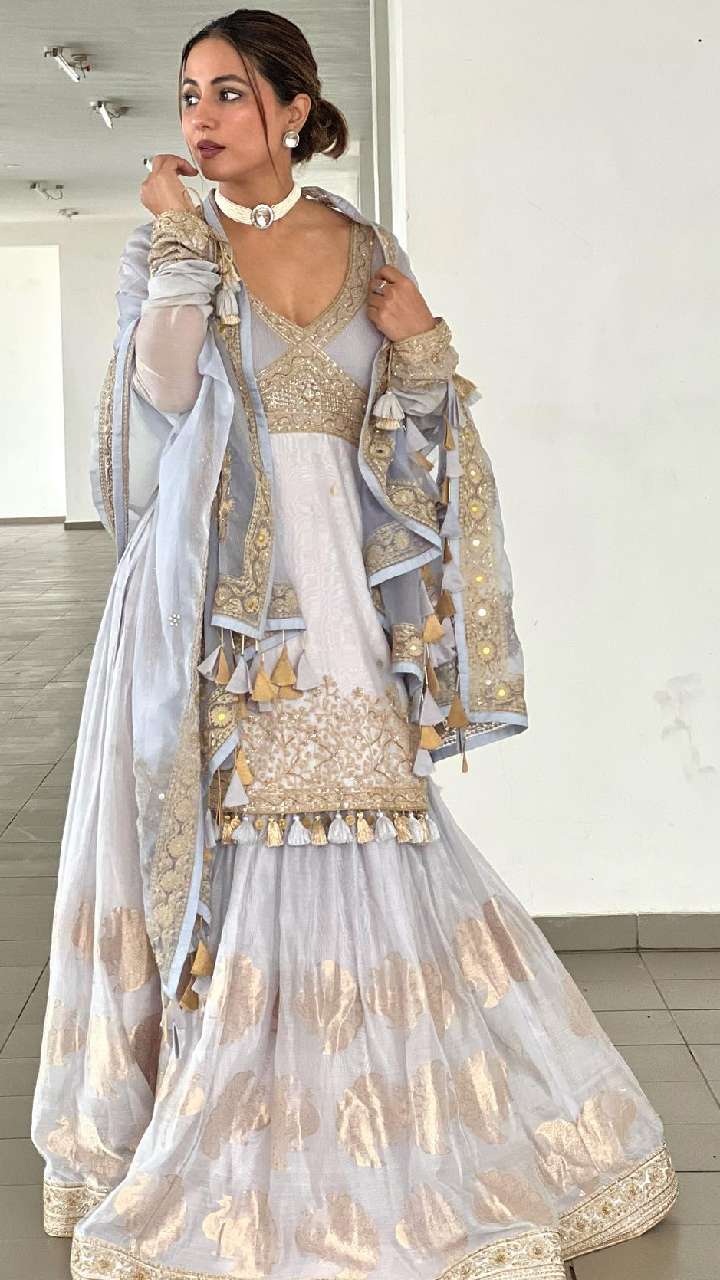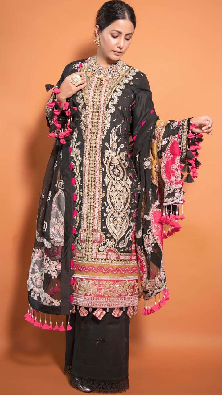 कुछ हेवी ट्राई करने का सोच रही हैं तो हिना का ये हेवी अनारकली सूट भी बेस्ट है।