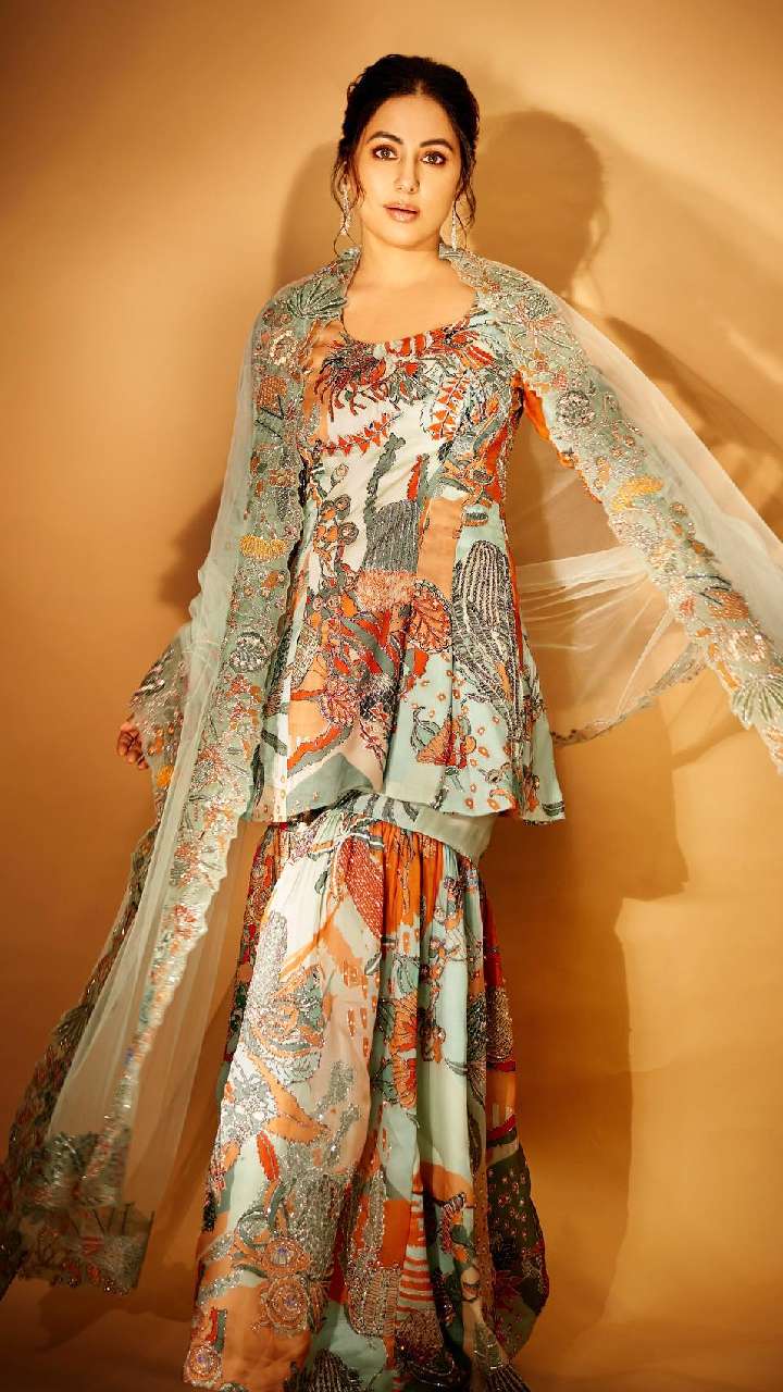 एक्ट्रेस का ये प्रिंटेड शरारा सूट लुक सिंपल होने के साथ काफी एलिगेंट लुक दे रहा है।
