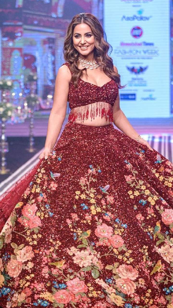 हाल में टाइम्स फैशन वीक के दौरान हिना ने ब्लैक लहंगे में लाइमलाइट लूटी।