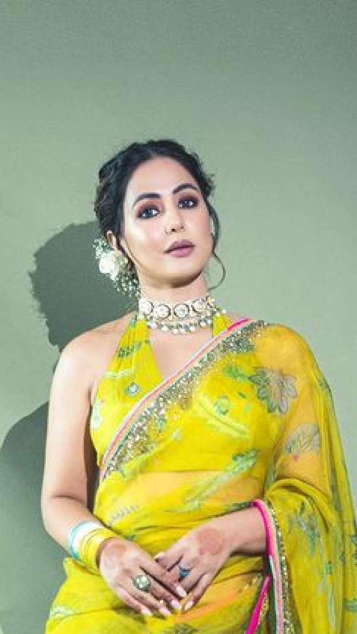 अगर आप सिंपल सोबर लुक पसंद करते हैं तो हिना खान का यह साड़ी लुक आपके लिए बिल्कुल परफेक्ट है।