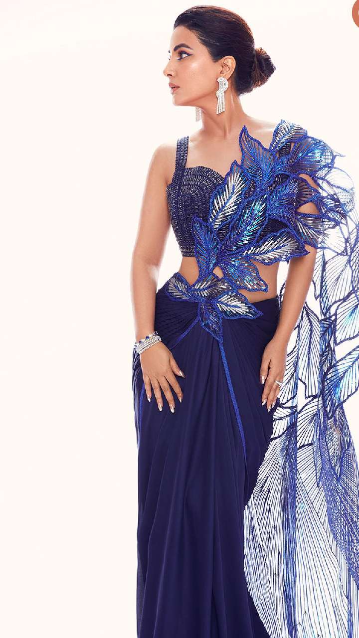 आप यदि कुछ डिफरेंट ट्राई करने का सोच रही हैं। तो डीवा की इस ब्लू डिजाइनर पल्लू रेडी टू वॉयर साड़ी से आइडिया ले सकती हैं। इसके साथ हैवी वर्क कट स्लीव्स ब्लाउज जंच रहा है।
