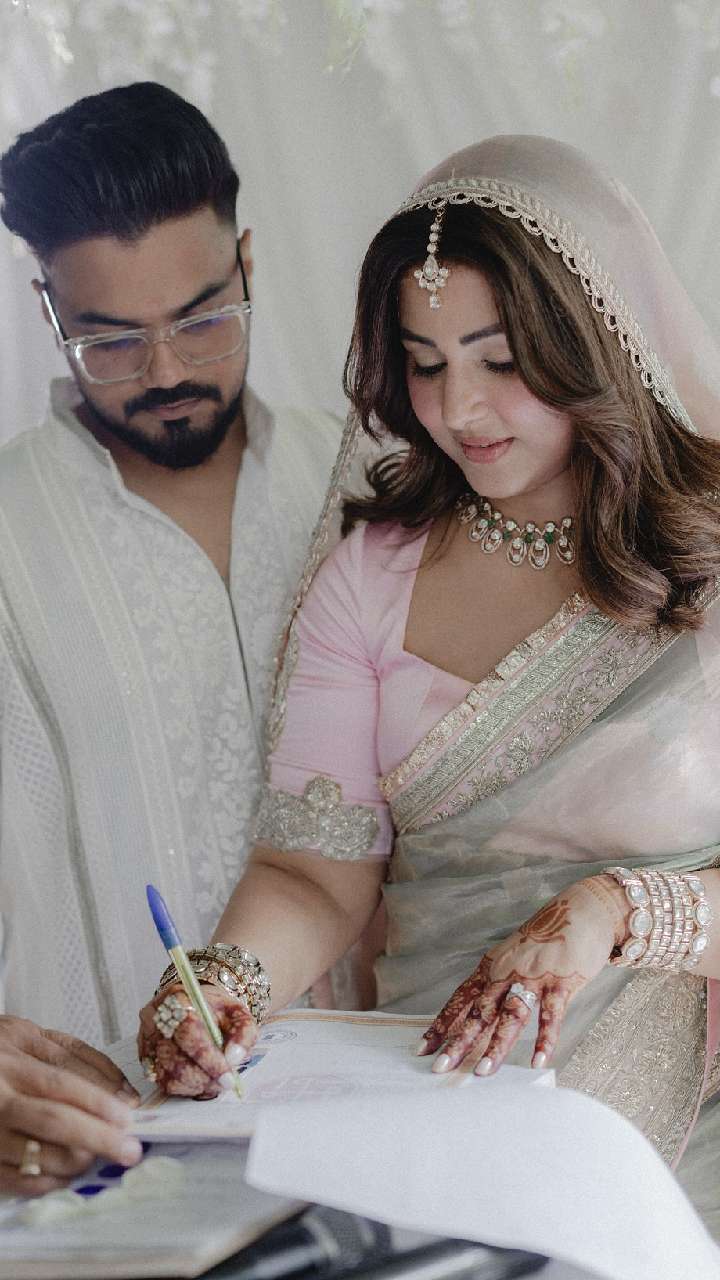 इस तस्वीर में हिना रॉकी के साथ शादी के पेपर्स पर साइन करती हुई नजर आ रही है। वह दोनों साथ में काफी खूबसूरत लग रहे है।