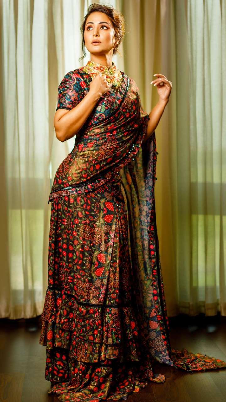 आज हम आपको हिना खान के सेसी साड़ी-ब्लाउज दिखाने जा रहे हैं। जिसे स्लिम गर्ल ट्राई करके खुद को हॉट लुक दे सकती हैं।