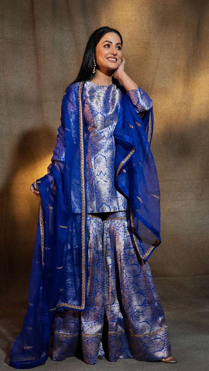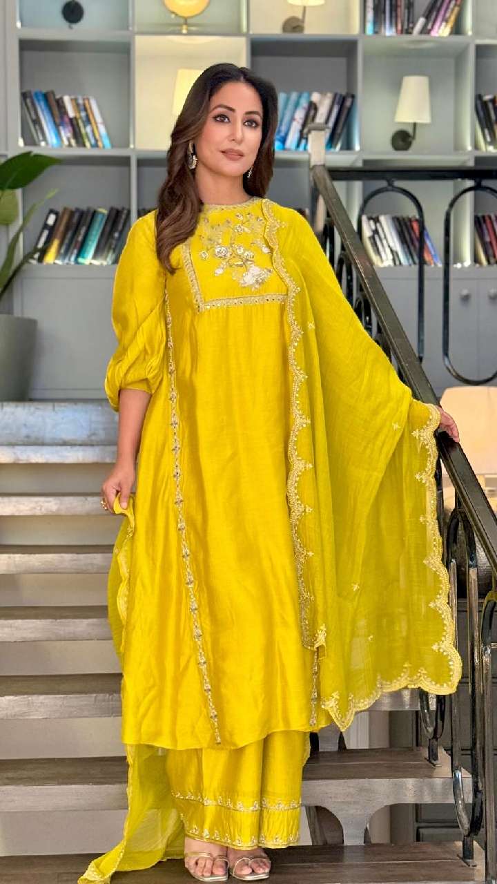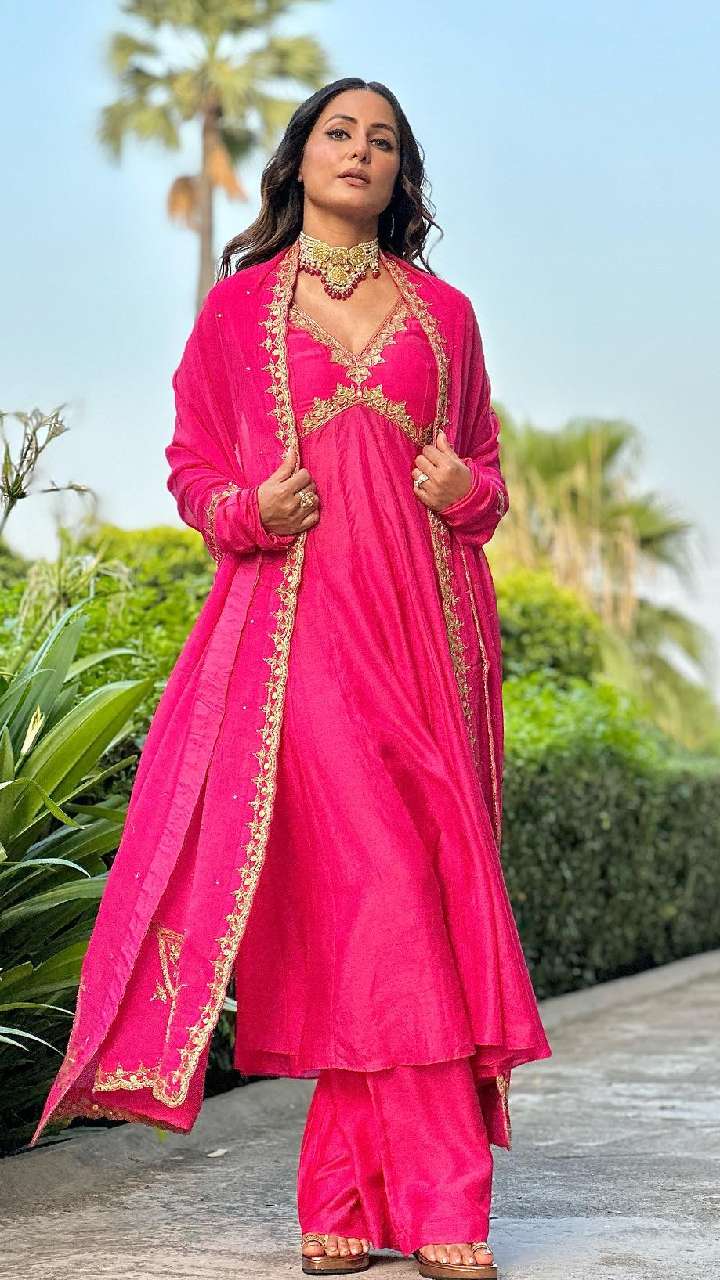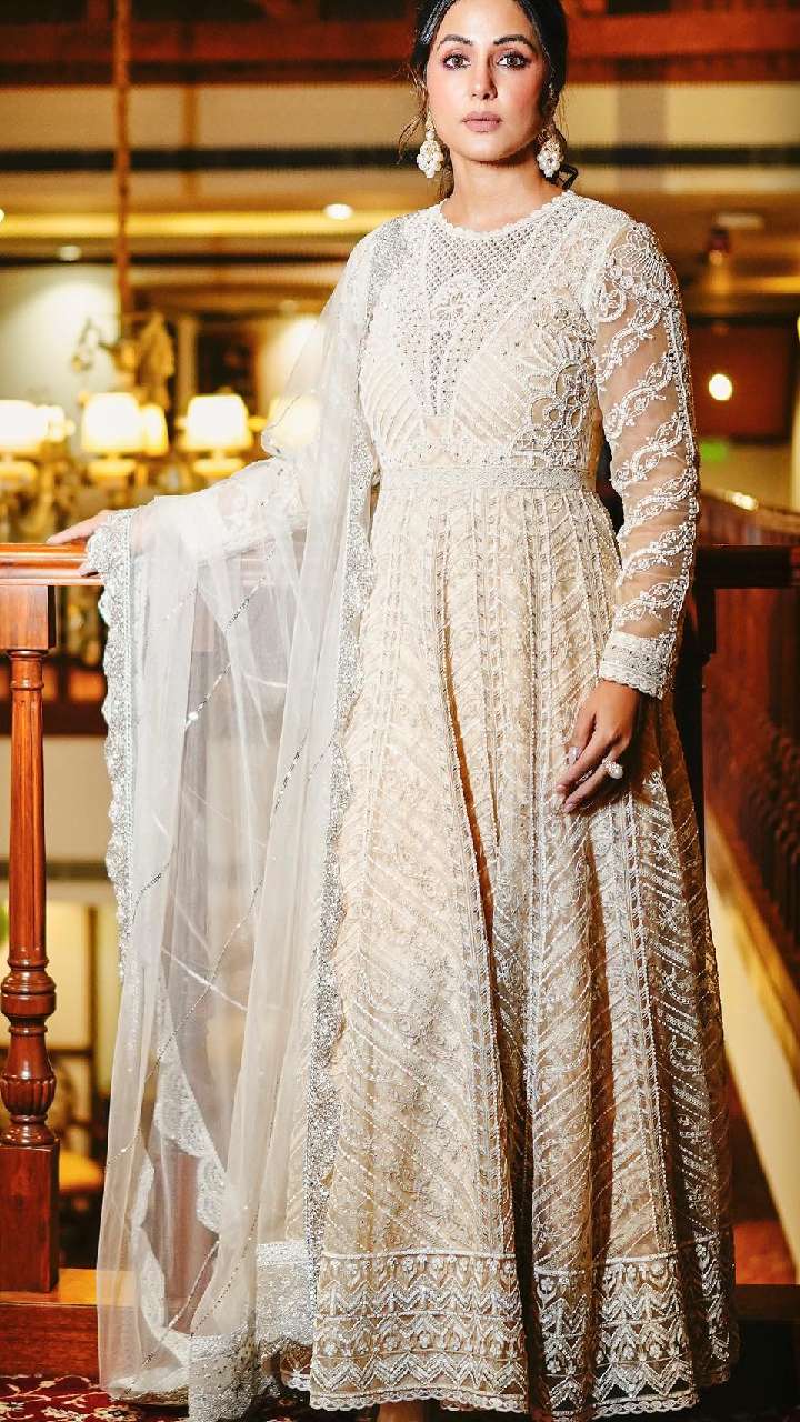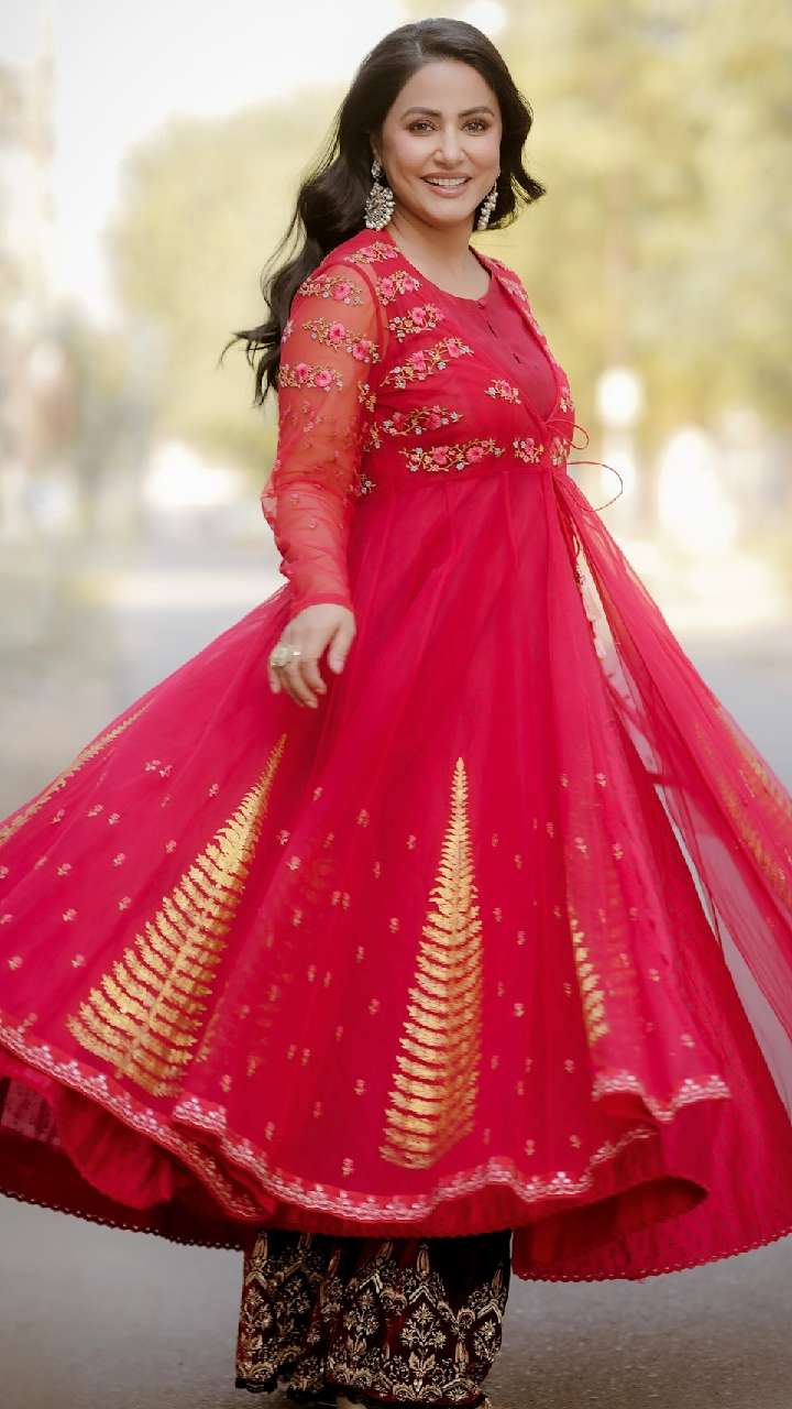 आप हिना खान के इस लुक को भी कॉपी कर सकती हैं। अंब्रेला सूट में एक्ट्रेस का लुक बहुत प्यारा लग रहा है।
