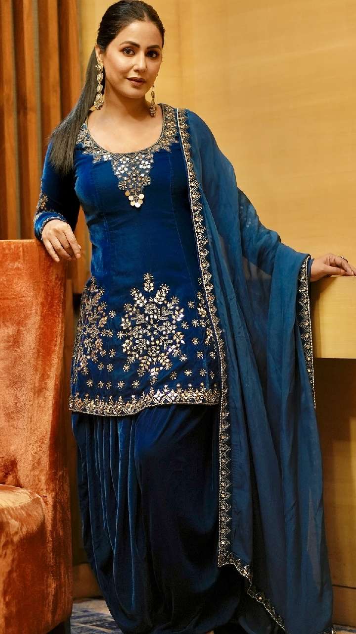 अपने लुक को रॉयल और अट्रैक्टिव बनाने के लिए आप हिना खान के इस वेलवेट पटियाला सूट लुक को कॉपी कर सकती हैं।