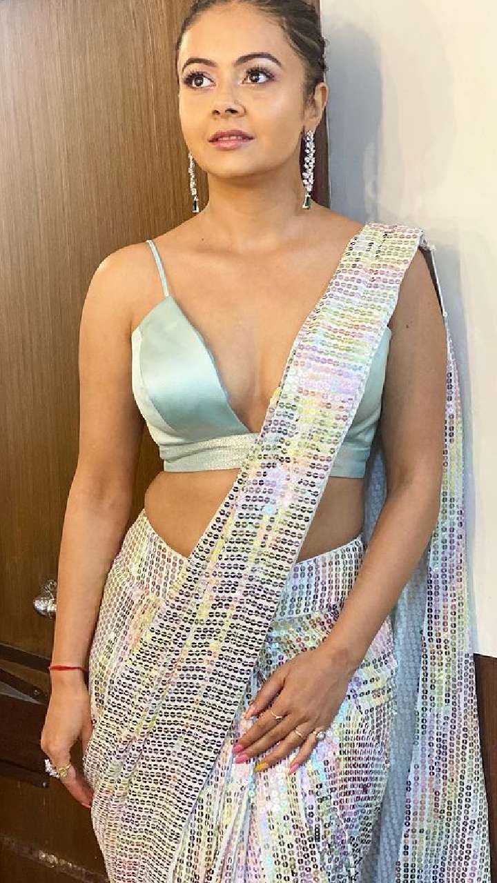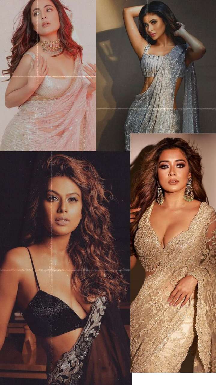 टीवी की नागिन का मौनी इस शिमरी साड़ी में बेहद बोल्ड लुक दे रही हैं।