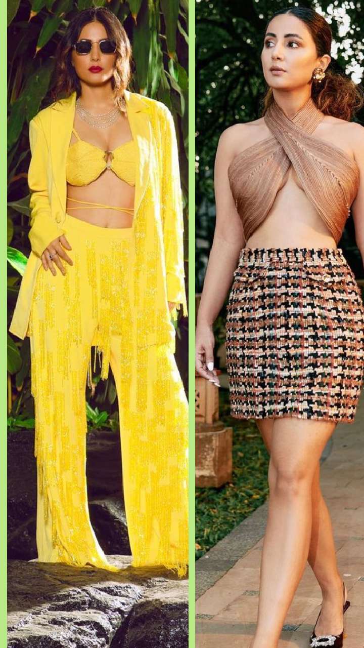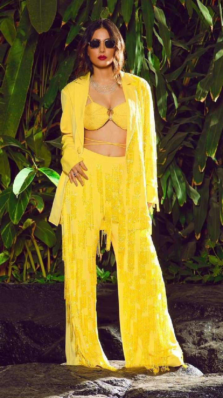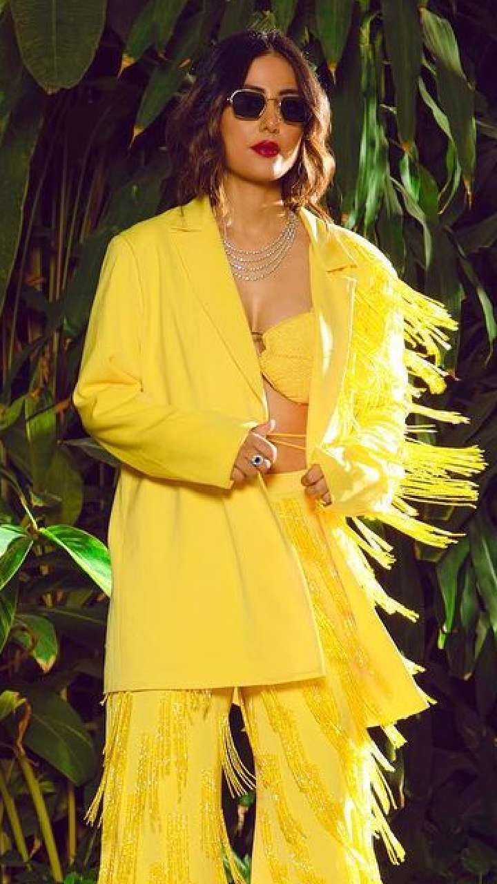 हाल में हिना खान ने येलो कलर को ऑर्ड सेट संग ब्रालेट में होने हॉट लुक से इंटरनेट पर बवाल मचा दिया है।