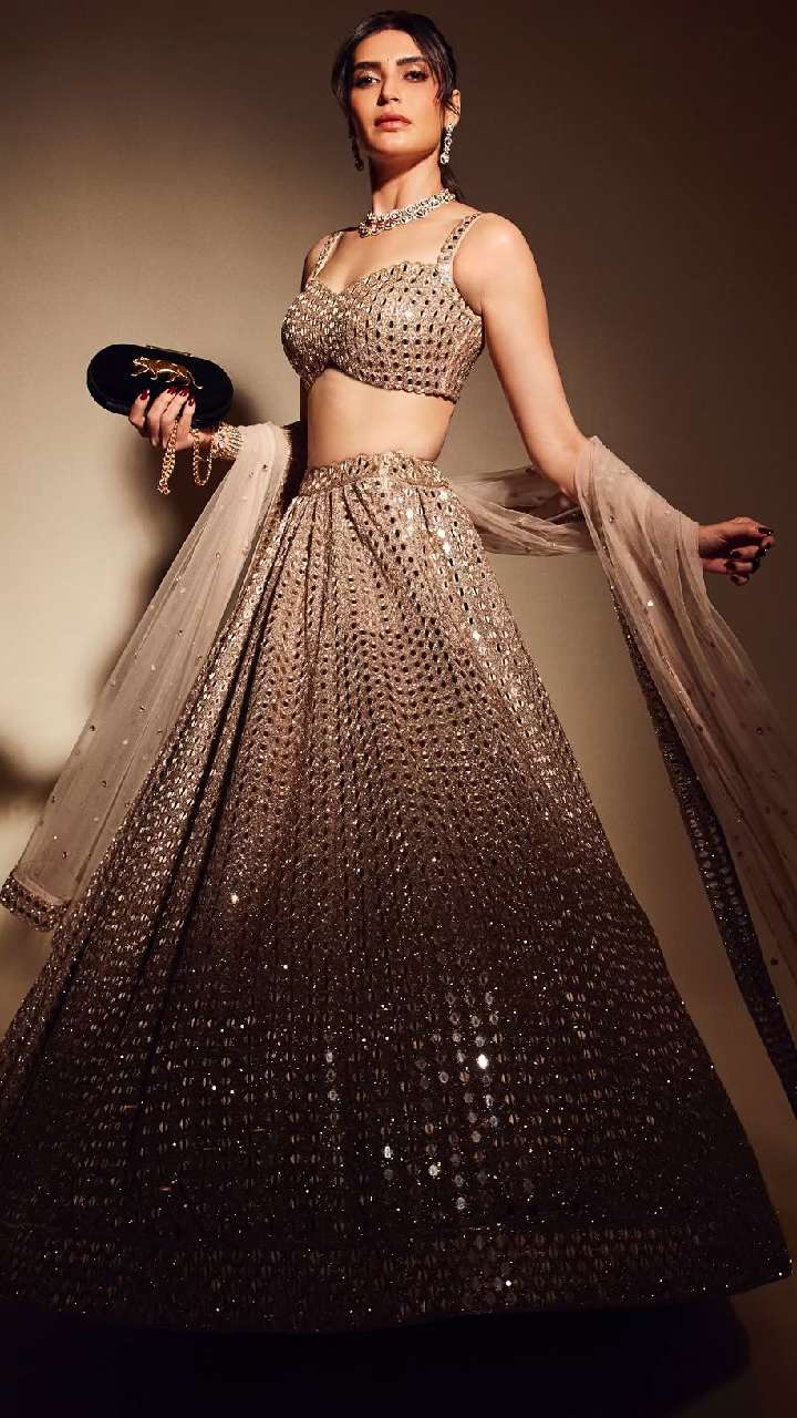 आप भी अपने भाई की शादी में स्टाइलिश दिखने के लिए आउटफिट सर्च कर रही हैं, तो एक्ट्रेस के इस लहंगे को कॉपी कर सकती हैं। करिश्मा तन्ना ने गोल्डन कलर का लहंगा कैरी किया है, जिसमें वह गॉर्जियस लग रही हैं। ऐसे लहंगे काफी क्लासी लुक देते हैं।