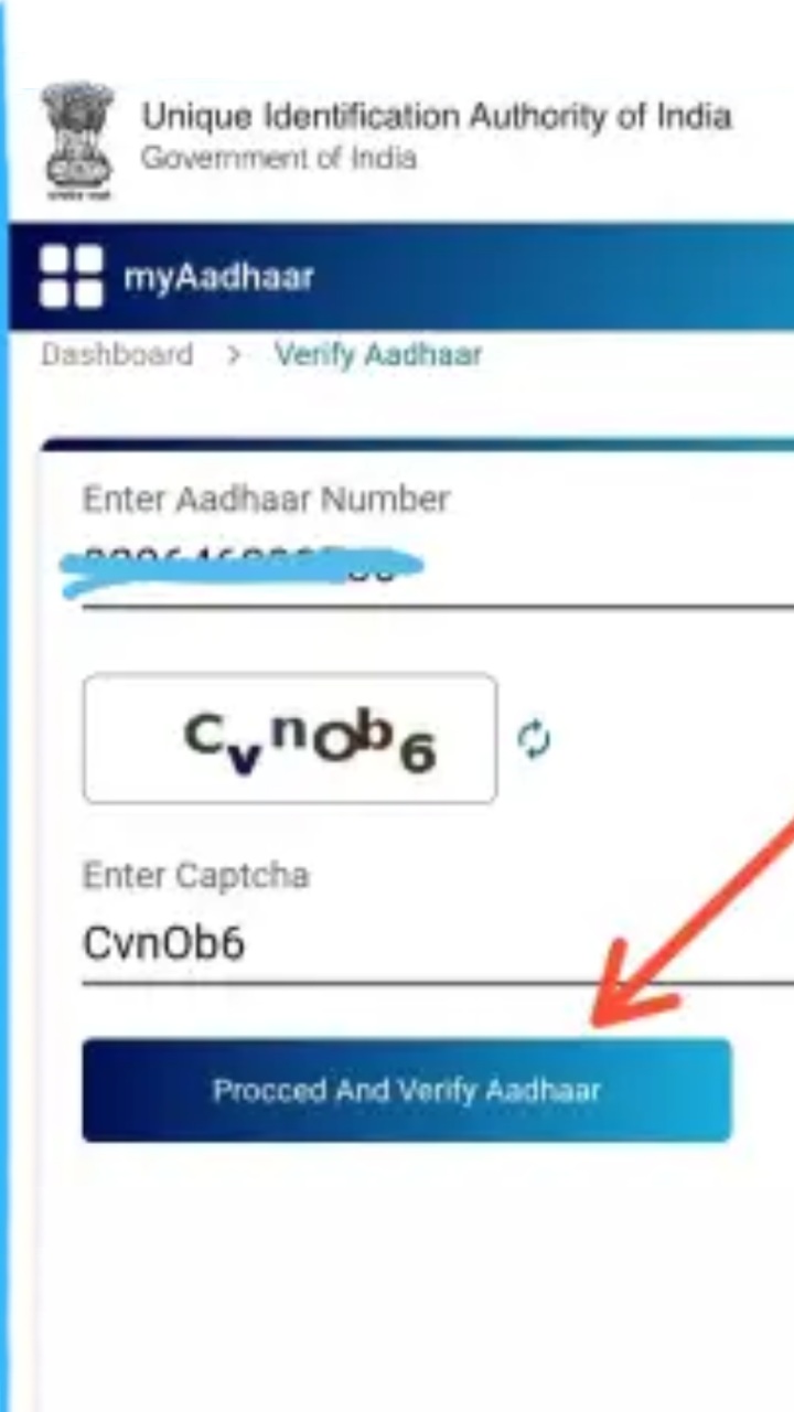 इसके बाद दिए गए स्पेस में अपना आधार नंबर भरें।