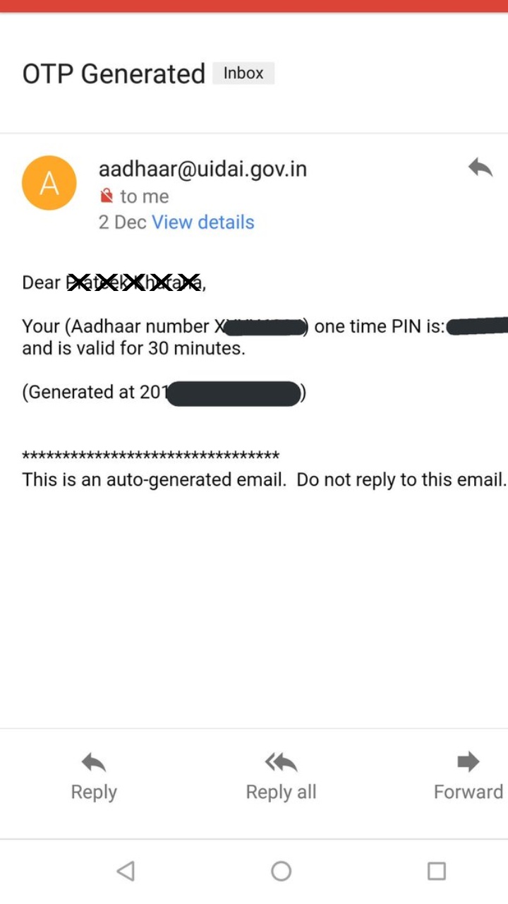 प्रक्रिया के सफलतापूर्वक पूरा होने पर, रजिस्टर्ड मोबाइल नंबर और ई-मेल पर एक संदेश भेजा जाएगा।
