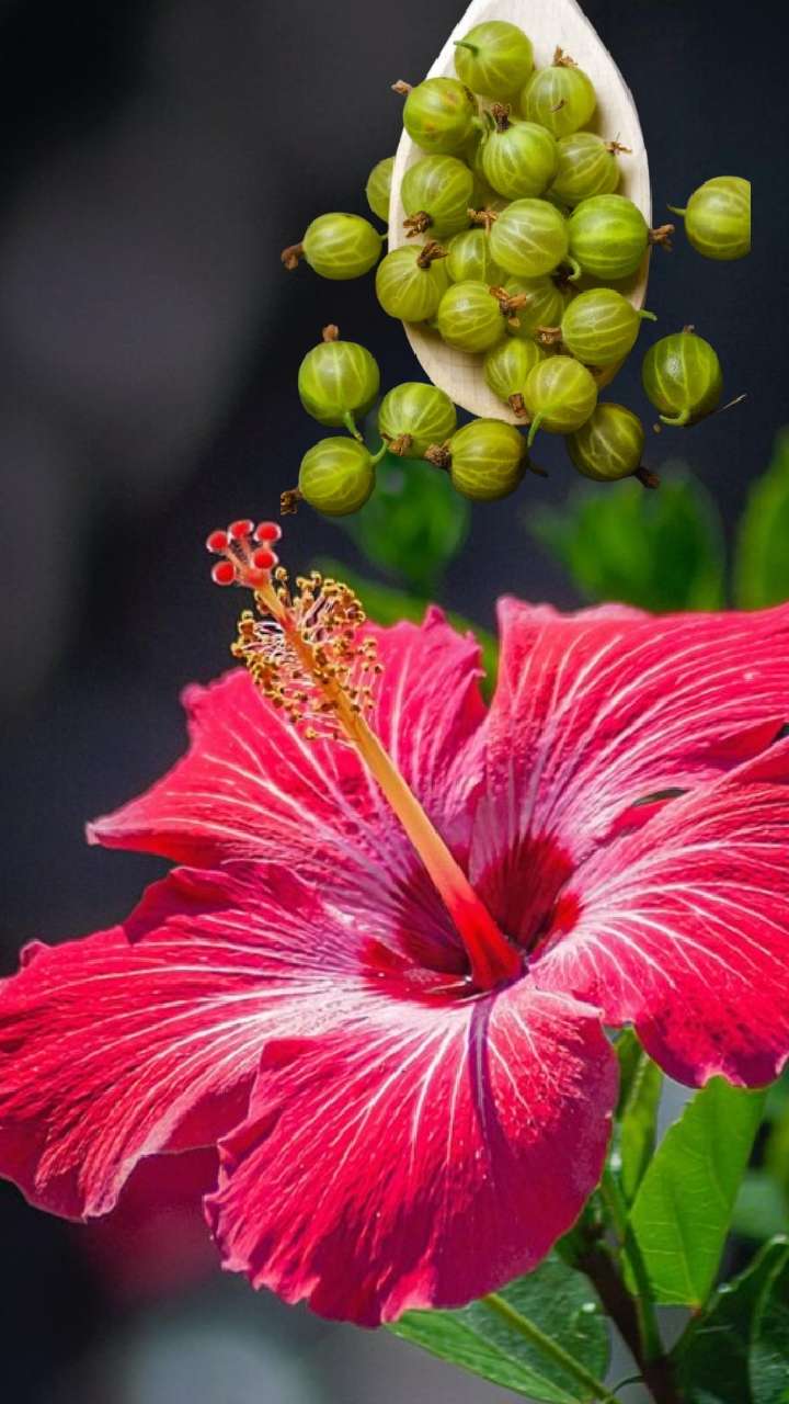 आंवला बालों के लिए बेहद फायदेमंद माना जाता है। आप इसे गुड़हल के फूल के साथ मिलकर लगाएं। आप पंखुड़ियों को पीसकर उसमें आंवला पाउडर मिलाएं। फिर, पेस्ट को 30 मिनट के लिए लगाकर ठंडे पानी से धो लें।