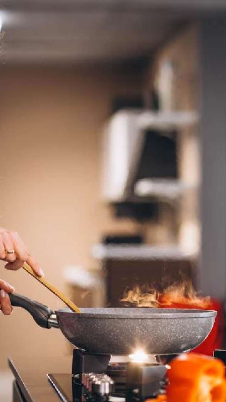 अब पैन में थोड़े से तेल में शिमला मिर्च, हल्दी पाउडर, प्याज, नमक, गरम मसाला, पनीर मिलाकर बनाएं।