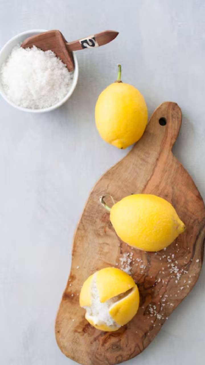 नींबू में एंटी-ऑक्सिडेंट्स पाए जाते हैं, जो काले दाग धब्बों को कम करने में मदद करते हैं। काली कोहनी को साफ करने के लिए 1 नींबू और 1 चम्मच चीनी लीजिए।
