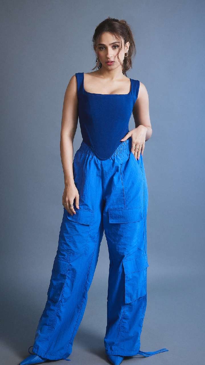 आप स्कर्ट के साथ शर्ट भी पेयर कर सकती हैं। पश्मीना रोशन ने व्हाइट शर्ट के साथ ब्लू स्कर्ट को पेयर किया है।