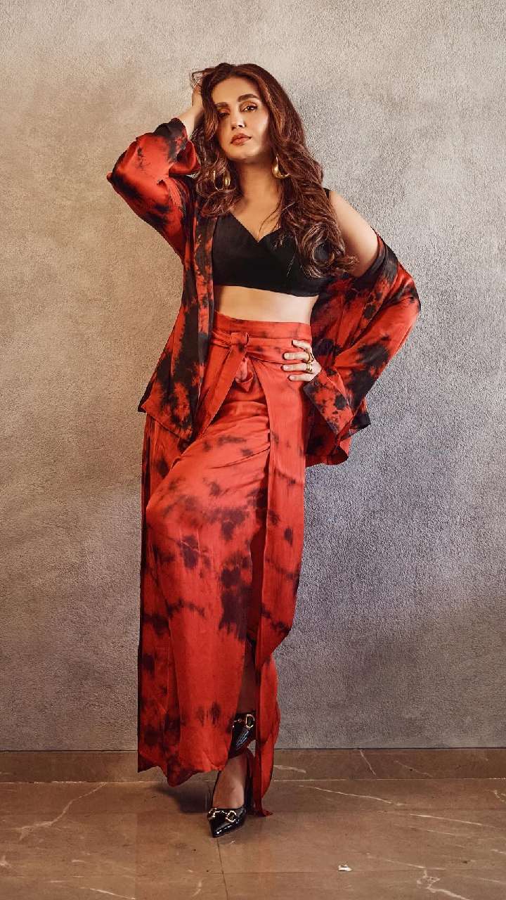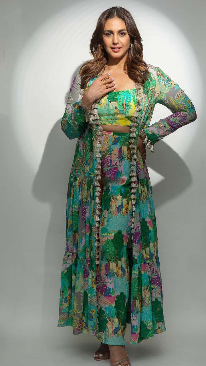 हुमा इस टाई एंड डाई प्रिंट प्लाजो प्लेन क्रॉप टॉप और लांग ब्लेजर में काफी स्टाइलिश नजर आ रही हैं। आप भी इसे कॉपी कर सकती हैं।