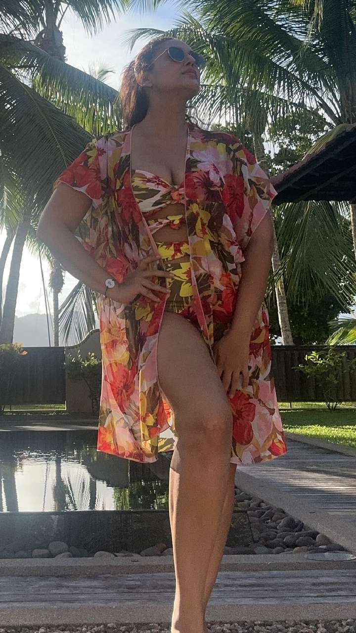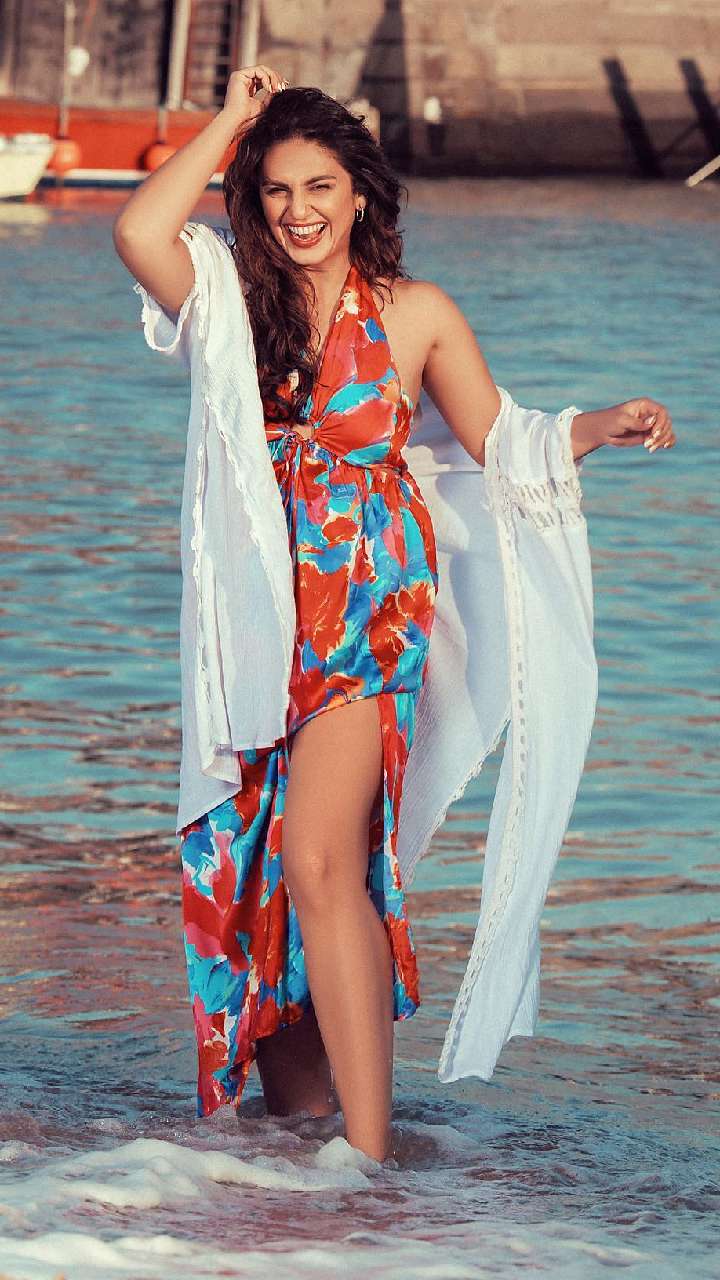 बीच वेकेशन पर हॉट दिखना है तो आप हुमा के जैसी प्रिंटेड टू पीस बिकिनी और श्रग लुक को कैरी कर सकती हैं। ये काफी स्मार्ट लगती हैं।