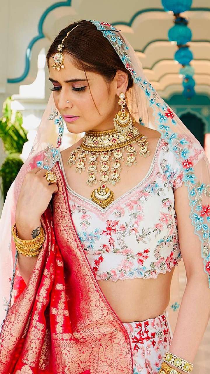 ब्राइडल आरती की तरह अपने किसी भी लहंगे के साथ इस तरह की स्वीट हार्ट नेक चोली से खुद को गॉर्जियस बना सकती हैं।