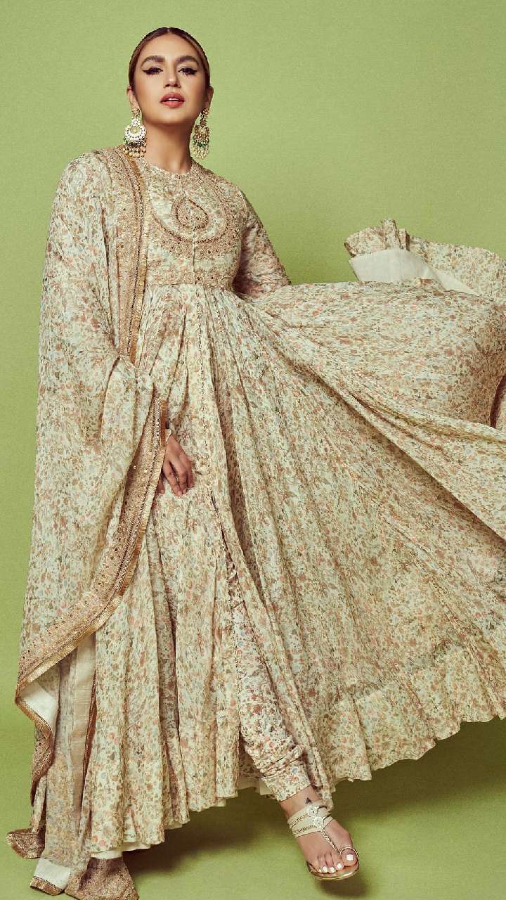 हुमा कुरैशी की ये प्रिंटेड अनारकली सूट डिजाइन भी काफी ज्यादा शानदार लग रहा है। अनारकली सूट प्लस साइज के लुक में खूब जचेगा।
