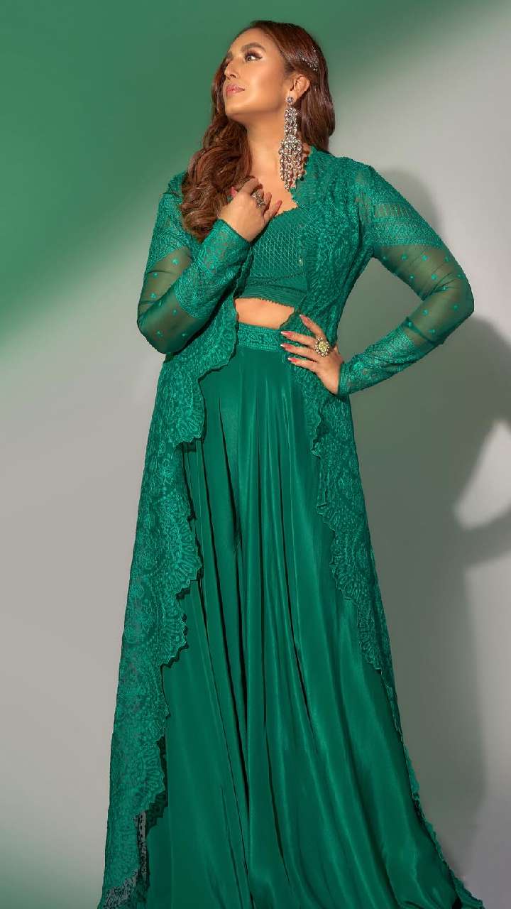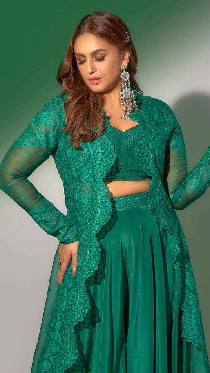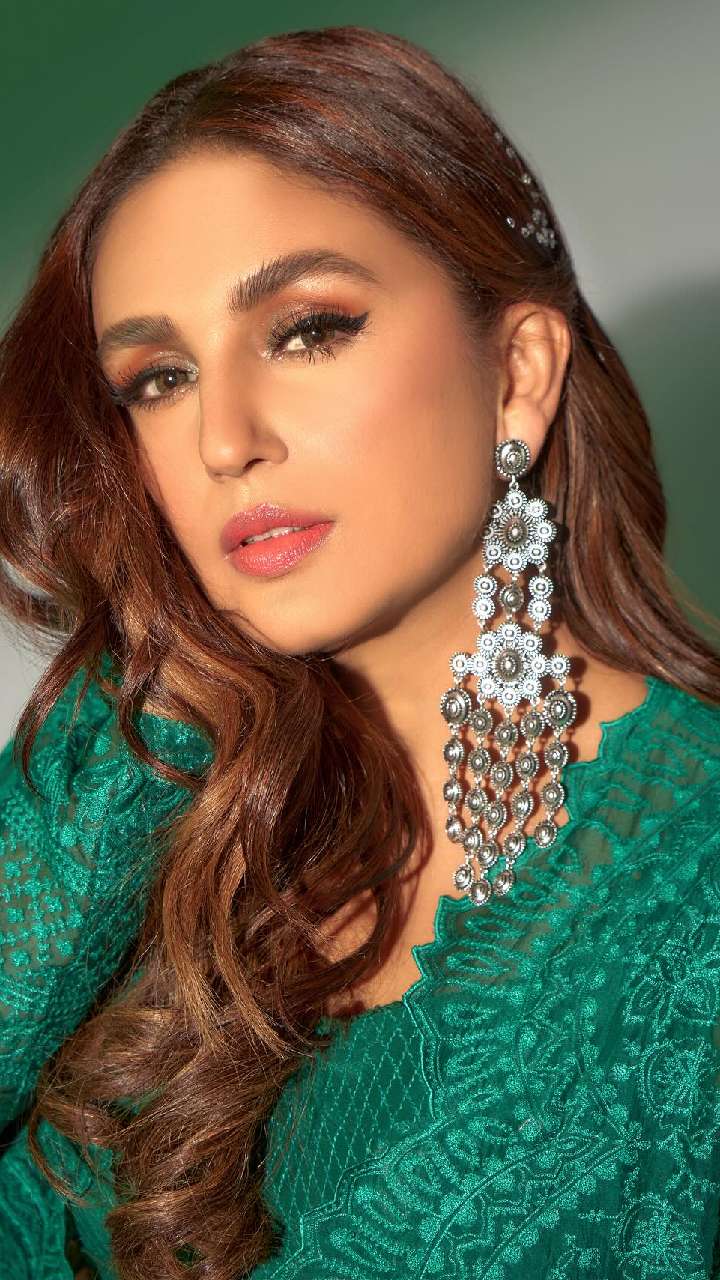 हुमा का इस ग्रीन इंडो-वेस्टर्न ड्रेस के साथ सिल्वर मल्टी लेयर झुमका काफी सूट कर रहा है। आपको भी ये लुक जरूर पसंद आया होगा।