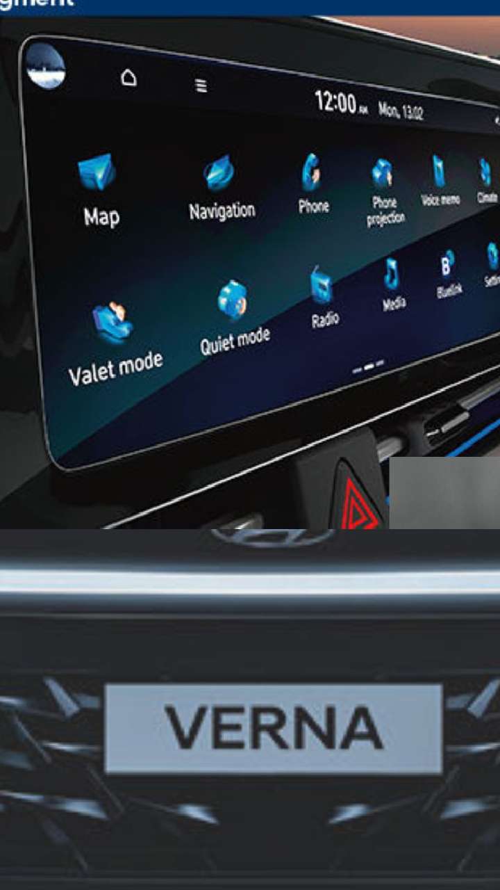 नई Hyundai Verna के इंटीरियर में ड्यूल-टोन बेज-ब्लैक इंटीरियर और डैशबोर्ड और डोर ट्रिम्स पर सॉफ्ट-टच मटीरियल का इस्तेमाल किया गया है, जिससे दिखने में ये गाड़ी ऑल न्यू लगने लगती है।