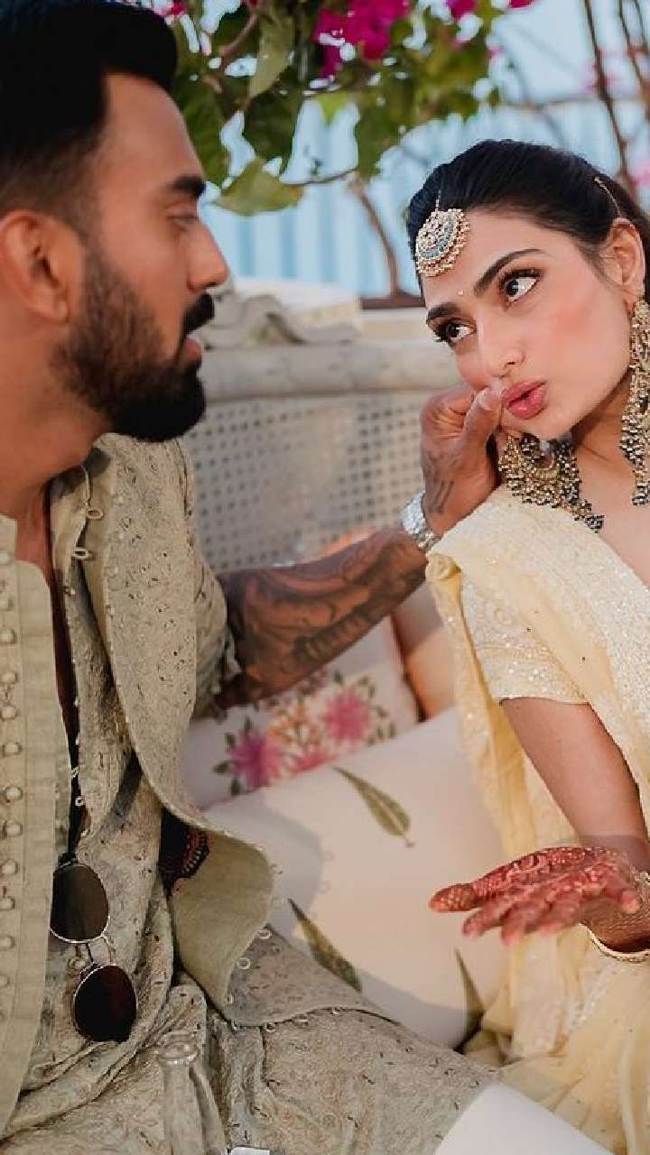 अथिया शेट्टी और के एल राहुल की कपलिंग की चर्चाएं हर जगह शुमार हैं, दोनों शादी के बंधन में बंध गए हैं।