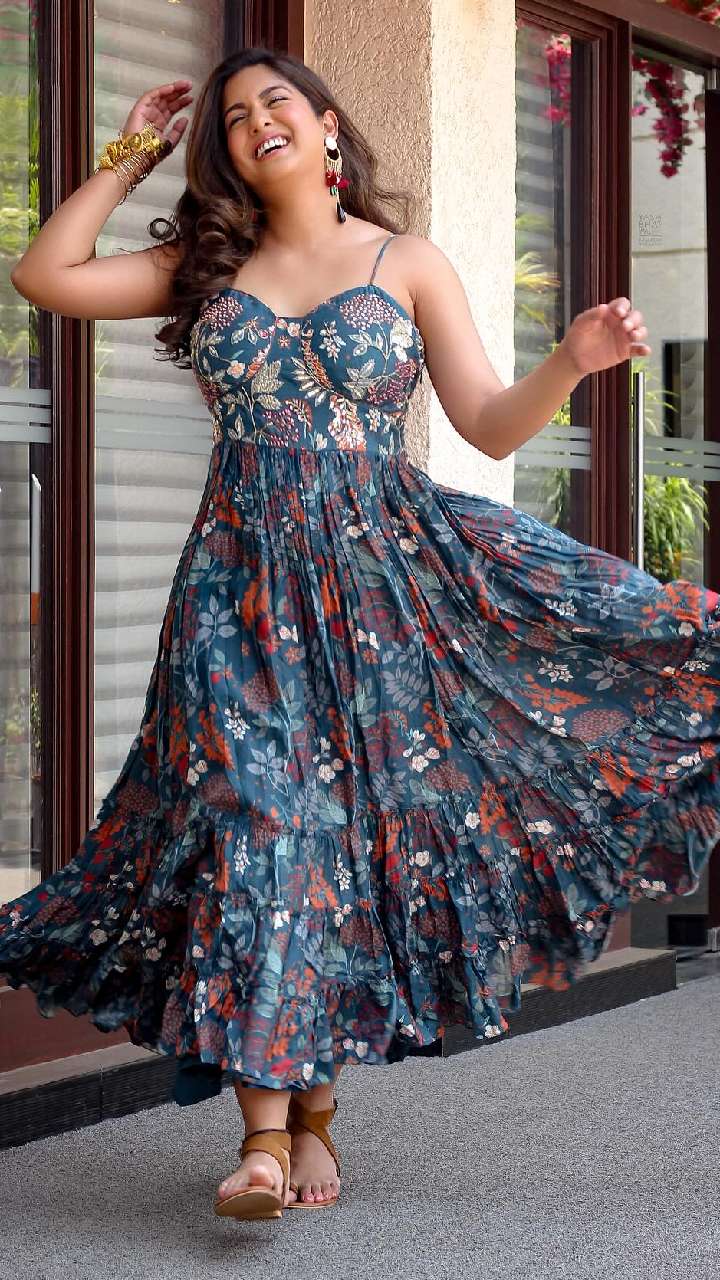 गर्मी में प्रिंटेड ड्रेस आपके लुक में चार चांद लगा देगी। एक्ट्रेस का ये लुक काफी कूल और स्टाइलिश लग रहा है।