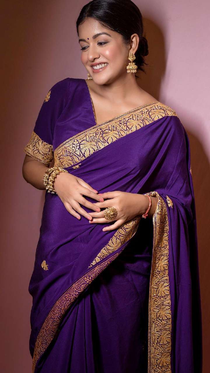 इस पर्पल कलर की साड़ी में इशिता दत्ता काफी ज्यादा खूबसूरत दिख रहीं हैं। एक्ट्रेस का ये लुक बेहद शानदार है।