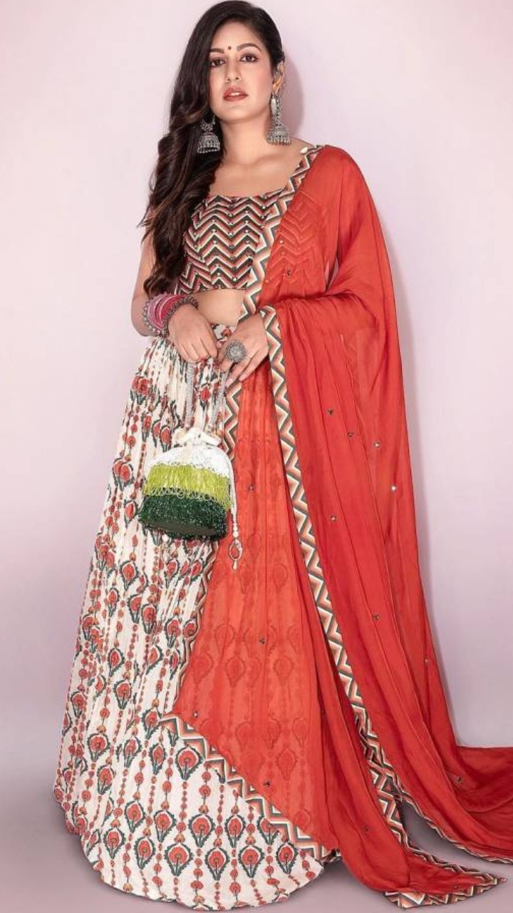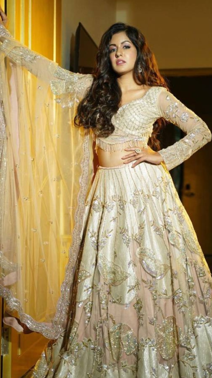 ऑफ वाइट कलर के एंब्रॉयडर्ड लहंगे और फुल स्लीव ब्लाउज में एक्ट्रेस का ये लुक शादी और फैमिली फंक्शन में पहनने के लिए परफेक्ट है।
