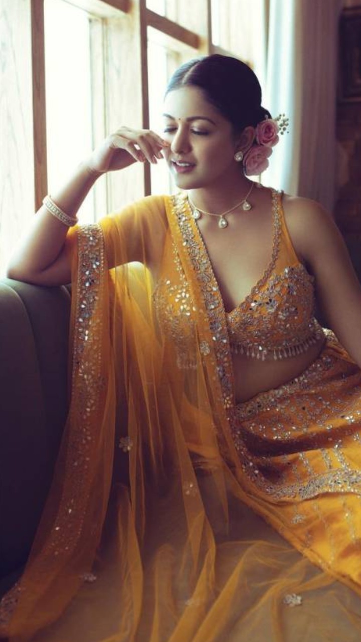 एक्ट्रेस येलो कलर के लहंगे और डीप नेक ब्लाउज में काफी खूबसूरत लग रही हैं। इशिता का ये लुक हल्दी के दौरान पहनने के लिए बेस्ट है।