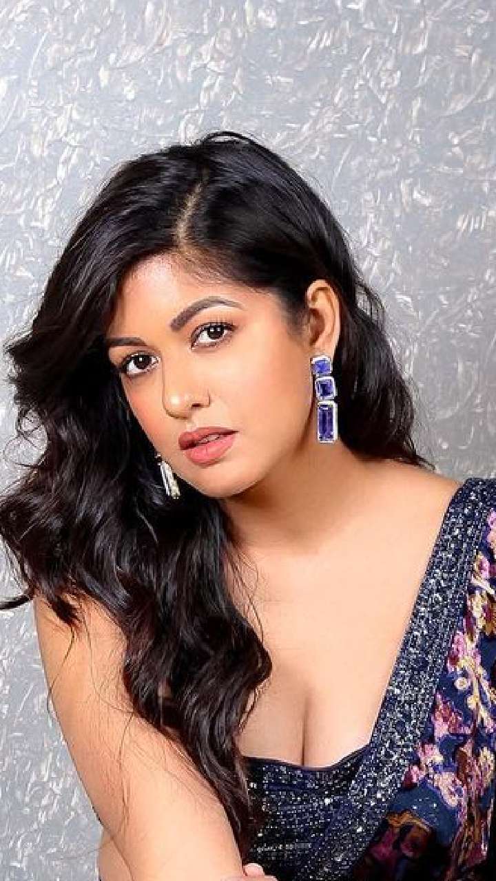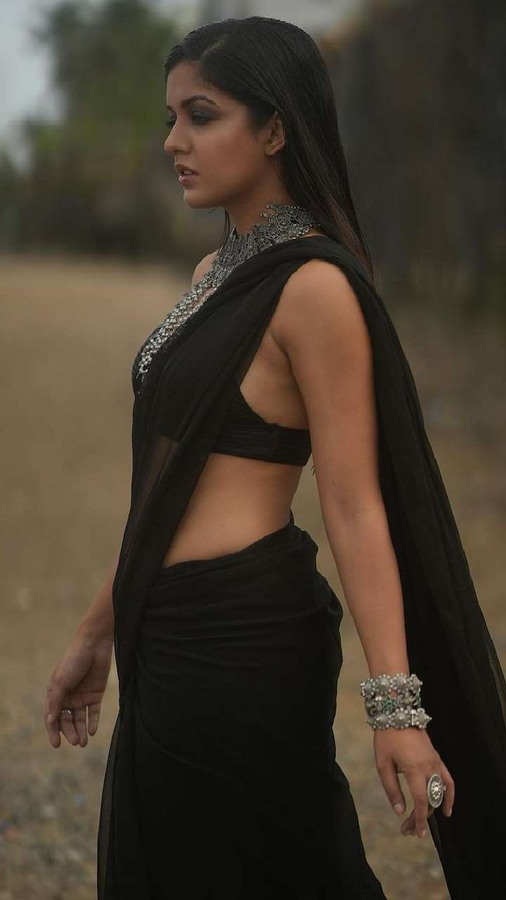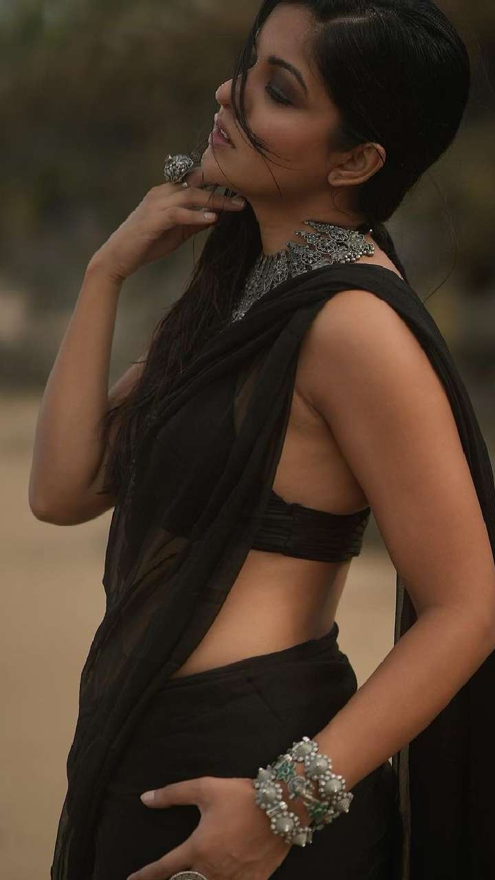 ब्लैक कलर की साड़ी में एक्ट्रेस बेहद ग्लैमरस और हॉट लग रही है।
