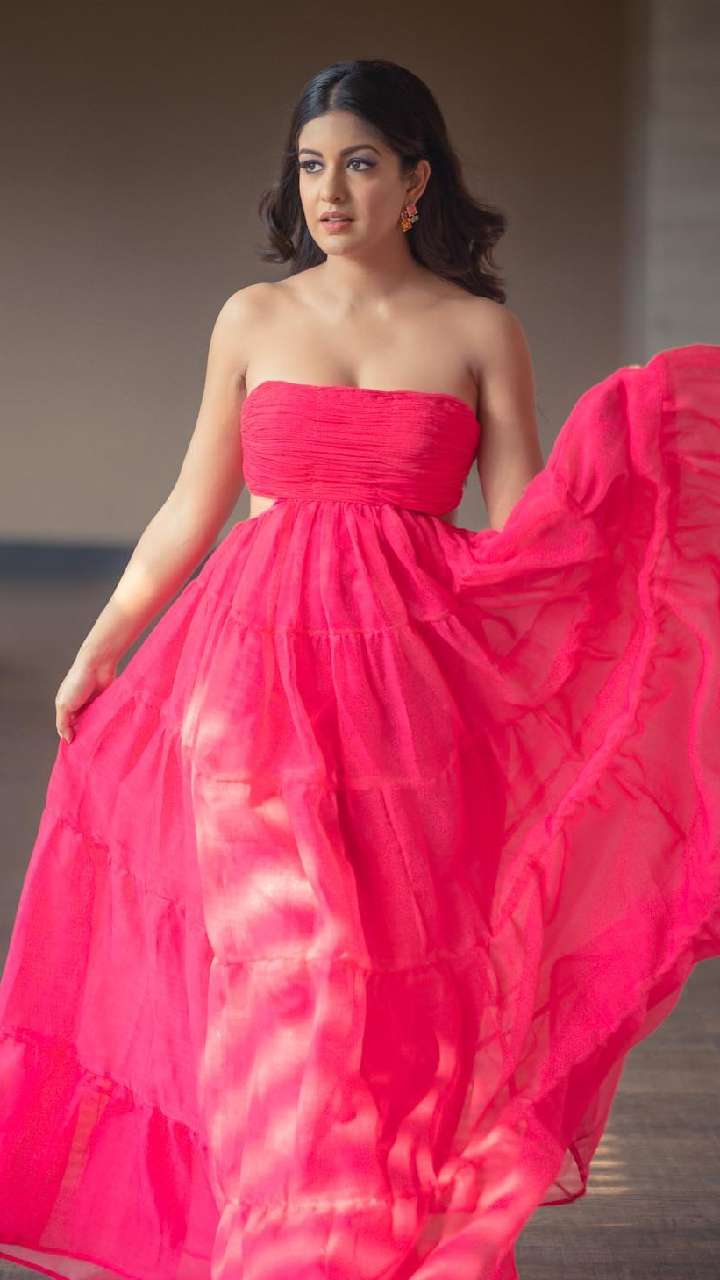 इस रेड कलर के स्ट्रैपी फ्रिल गाउन में अपनी बोल्डनेस से फैंस के दिलों को धड़का रही हैं। आप भी उनके इस लुक से आइडिया ले सकती हैं।