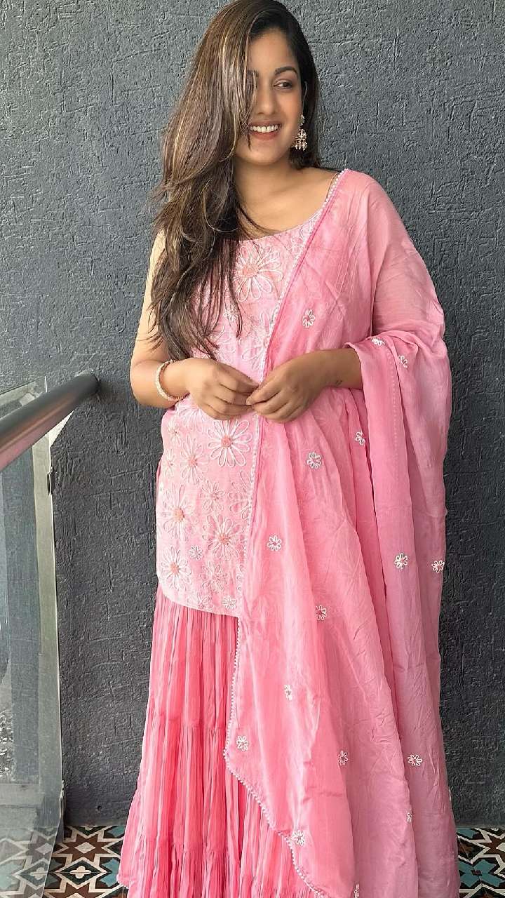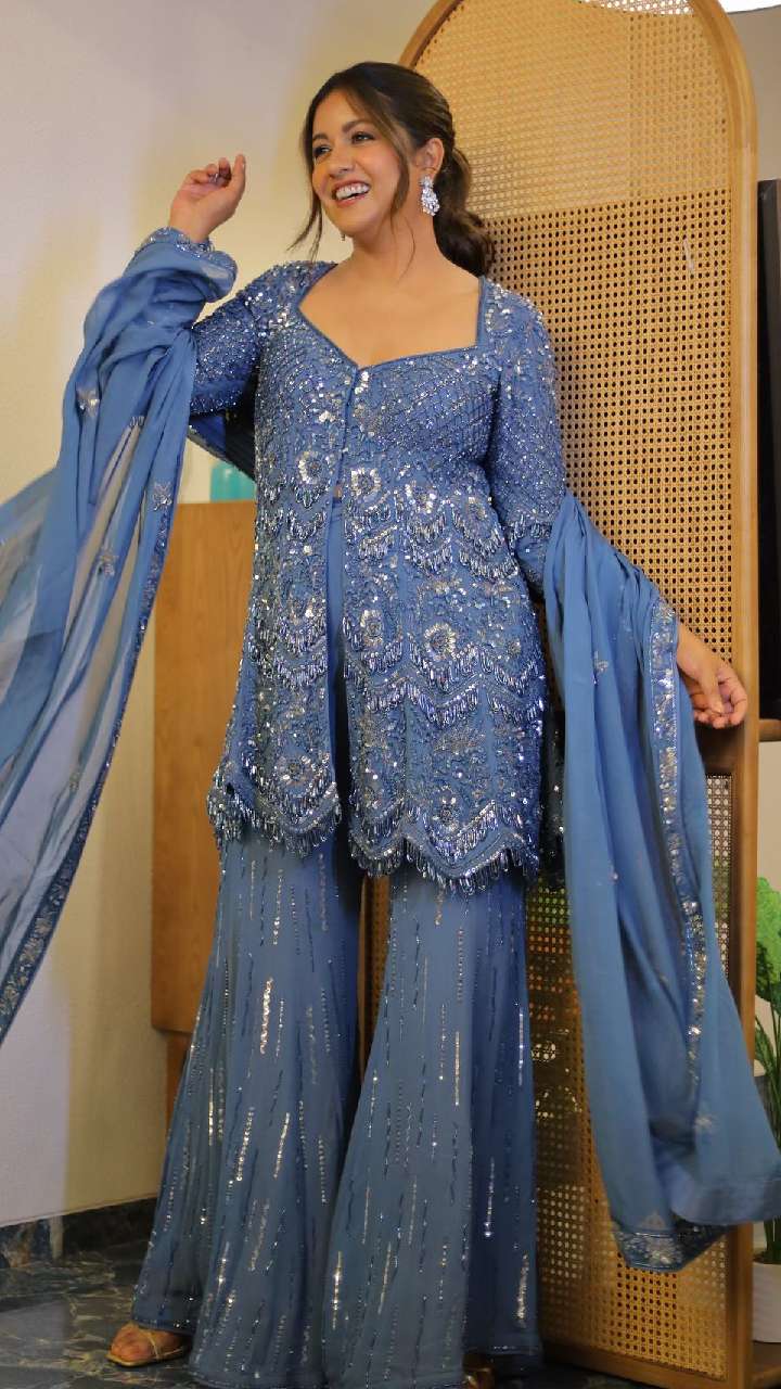 आप इशिता दत्ता की तरह ही शरारा पैटर्न सूट भी कैरी कर सकती हैं और लुक को शानदार बना सकती हैं।