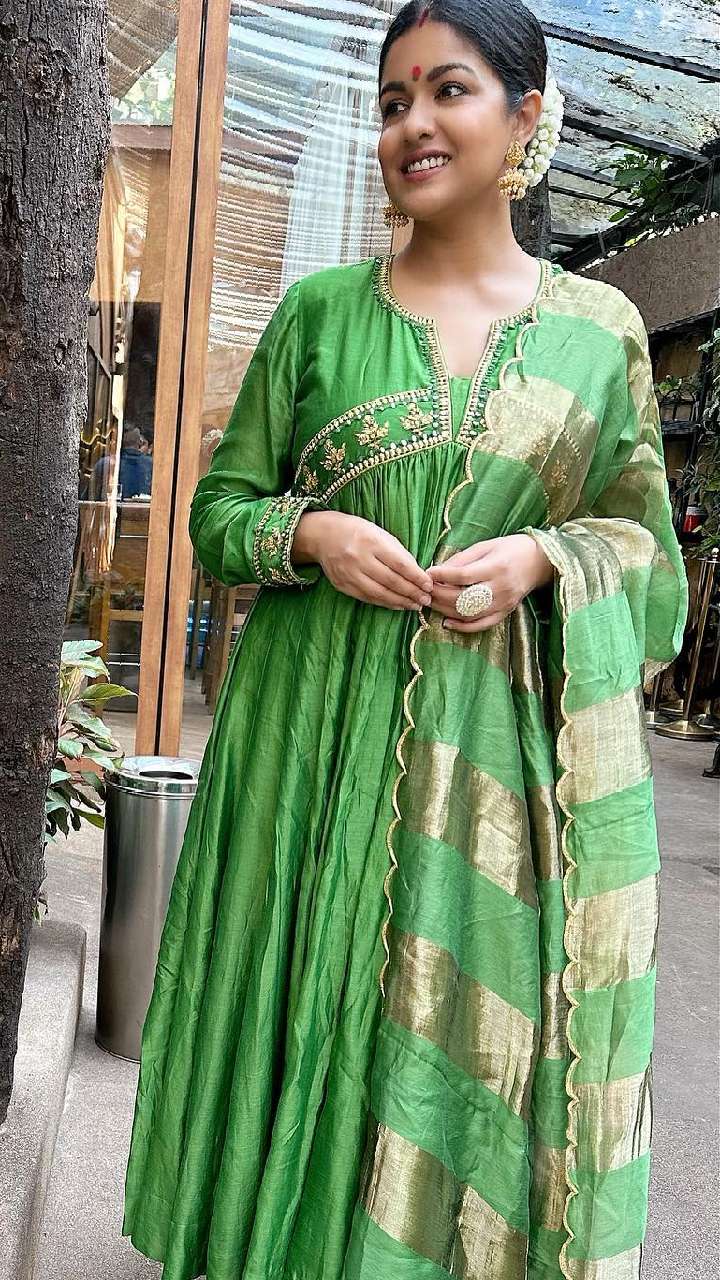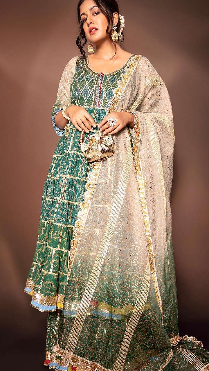 30 प्लस पर इशिता दत्ता का ये सूट भी बहुत अच्छा लगेगा। अंब्रेला सूट को आप किसी भी खास मौके पर स्टाइल कर सकती हैं।