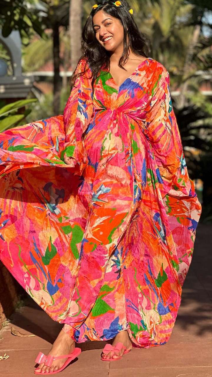 अपने लुक को सबसे डिफरेंट बनाने के लिए आप इशिता दत्ता की तरह ही कफ्तान स्टाइल कर सकती हैं। मल्टी कलर कफ्तान काफी शानदार लग रहा है।