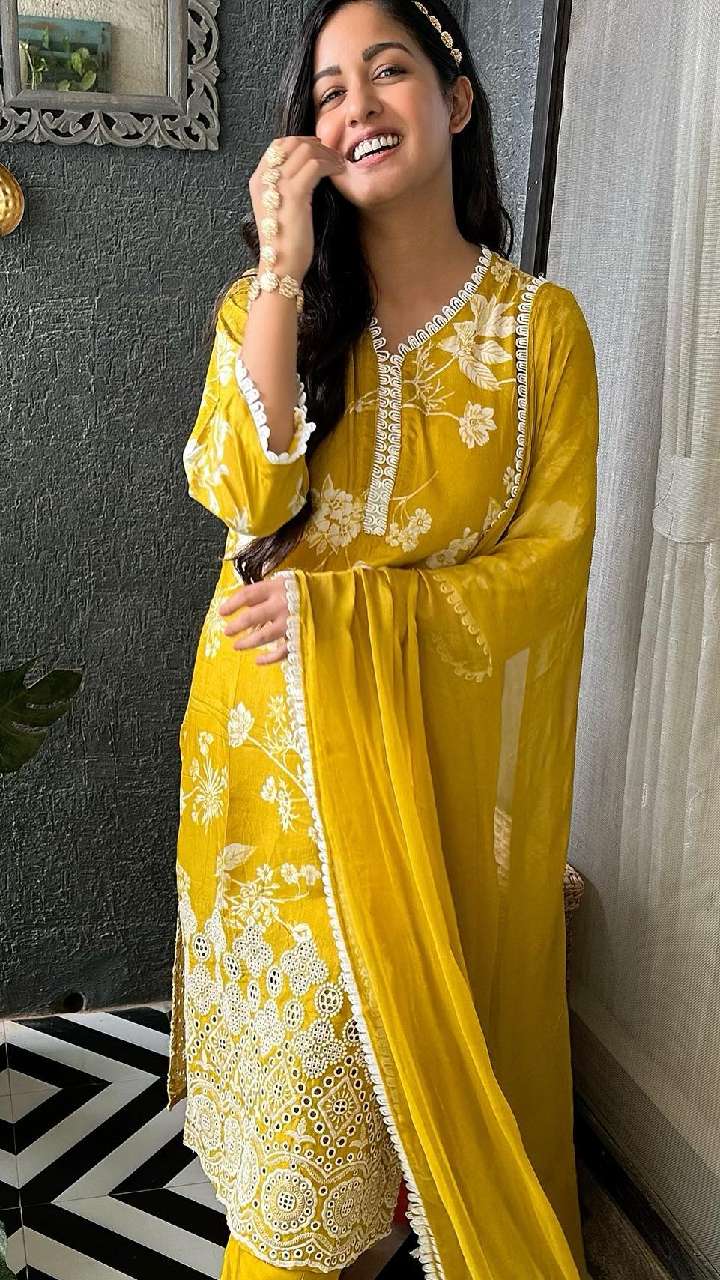 अगर आप कंफर्टेबल लुक कैरी करना चाहती हैं तो आप इशिता दत्ता की तरह ही प्लाजो पैटर्न सूट को खास जगहों पर पहन सकती हैं।