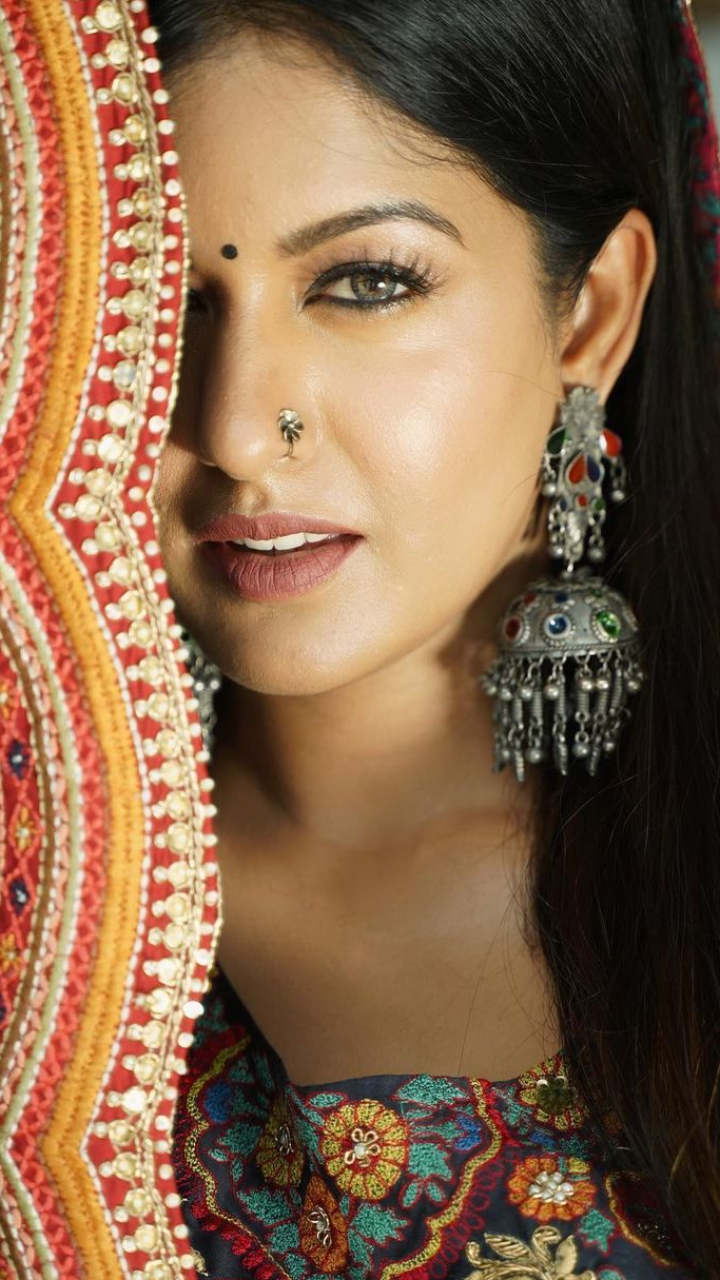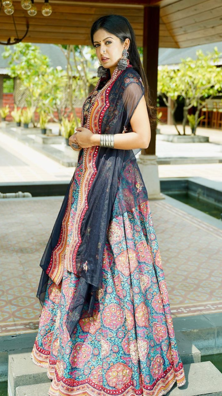 अभिनेत्री ने नवरात्री के अवसर पर नवरात्रि लुक कैरी किया हुआ है। फोटो में कलमकारी लहंगे में इशिता बेहद सुंदर दिख रही हैं।