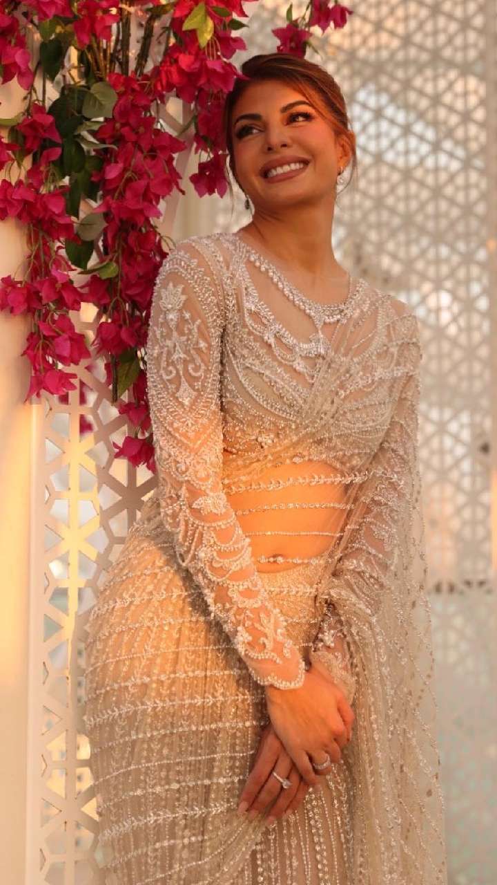सोशल मीडिया पर जैकलीन ने अपना लेटेस्ट साड़ी लुक शेयर किया है। सेसी साड़ी डिजाइन के साथ एक्ट्रेस ने वन शोल्डर ब्लाउज कैरी किया है।