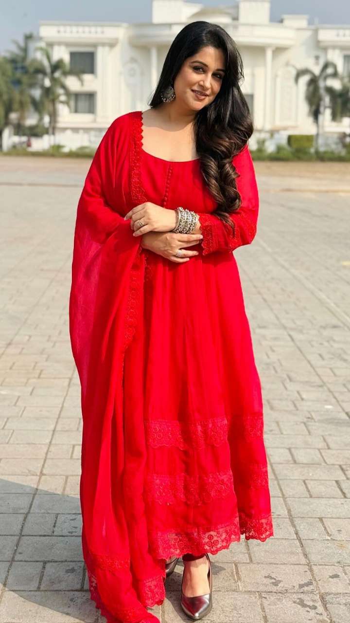 रेड और व्हाइट साड़ी में एक्ट्रेस काफी खूबसूरत लग रही है। इस साड़ी का डिजाइन देखने में काफी अट्रैक्टिव और यूनिक है। यह लाइट वेटेड साड़ी यंग गर्ल्स के लिए बेस्ट ऑप्शन है।