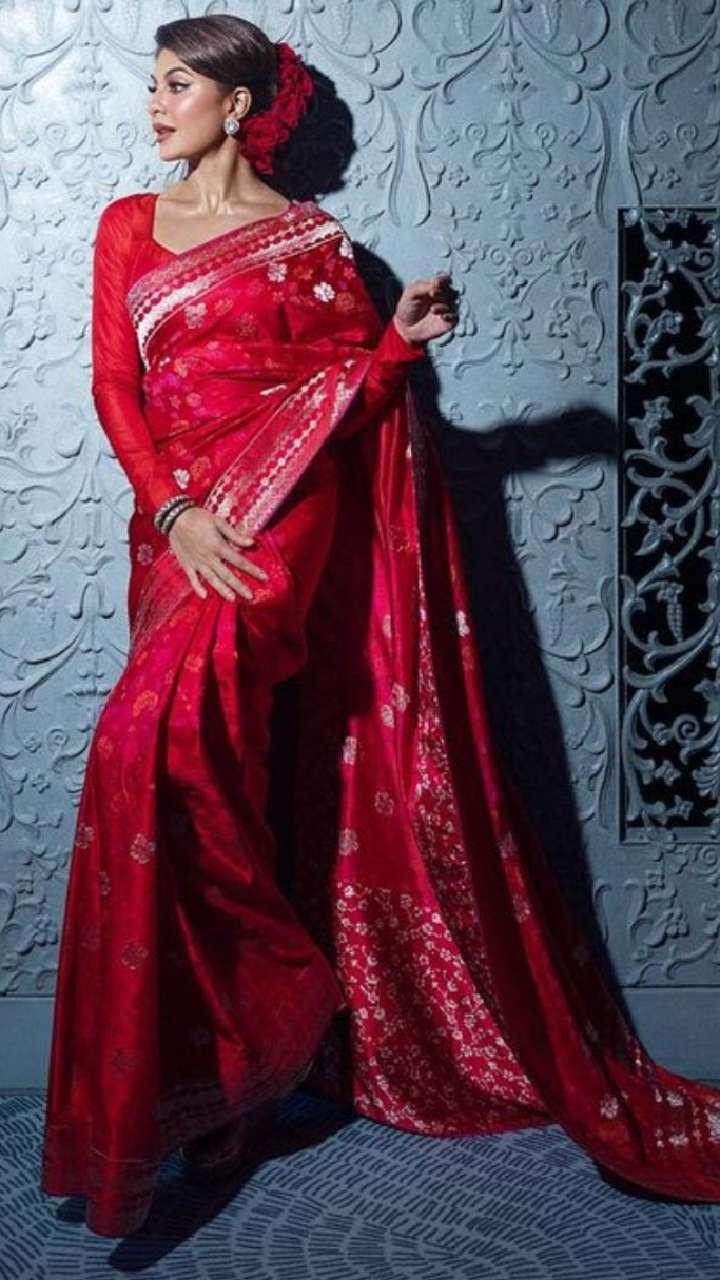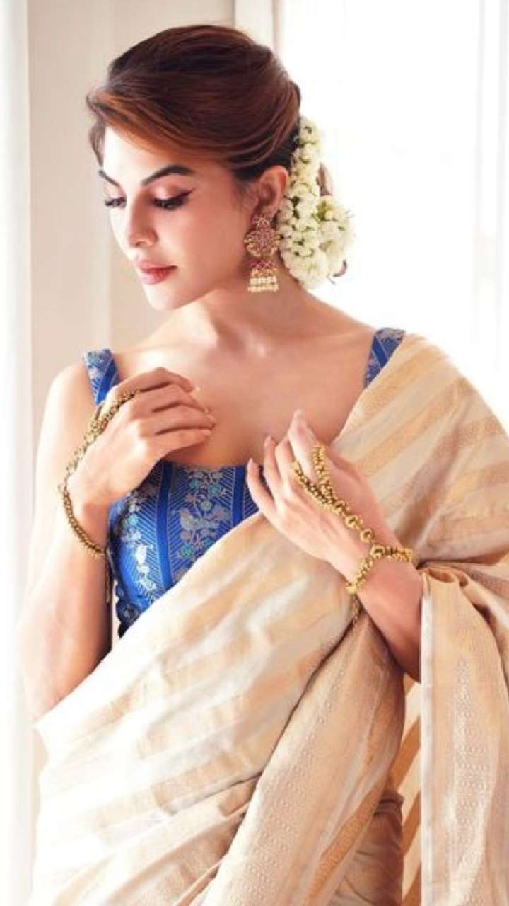 बॉलीवुड की एक्ट्रेस Jacqueline Fernandez पुरी इंडस्ट्री में अपने हॉट लुक्स को लेकर काफी फेमस रहती हैं। एक्ट्रेस के वेस्टर्न के साथ-साथ साड़ी लुक्स भी काफी ट्रेंड करते हैं। आइए नजर डालते हैं स्टोरी पर।