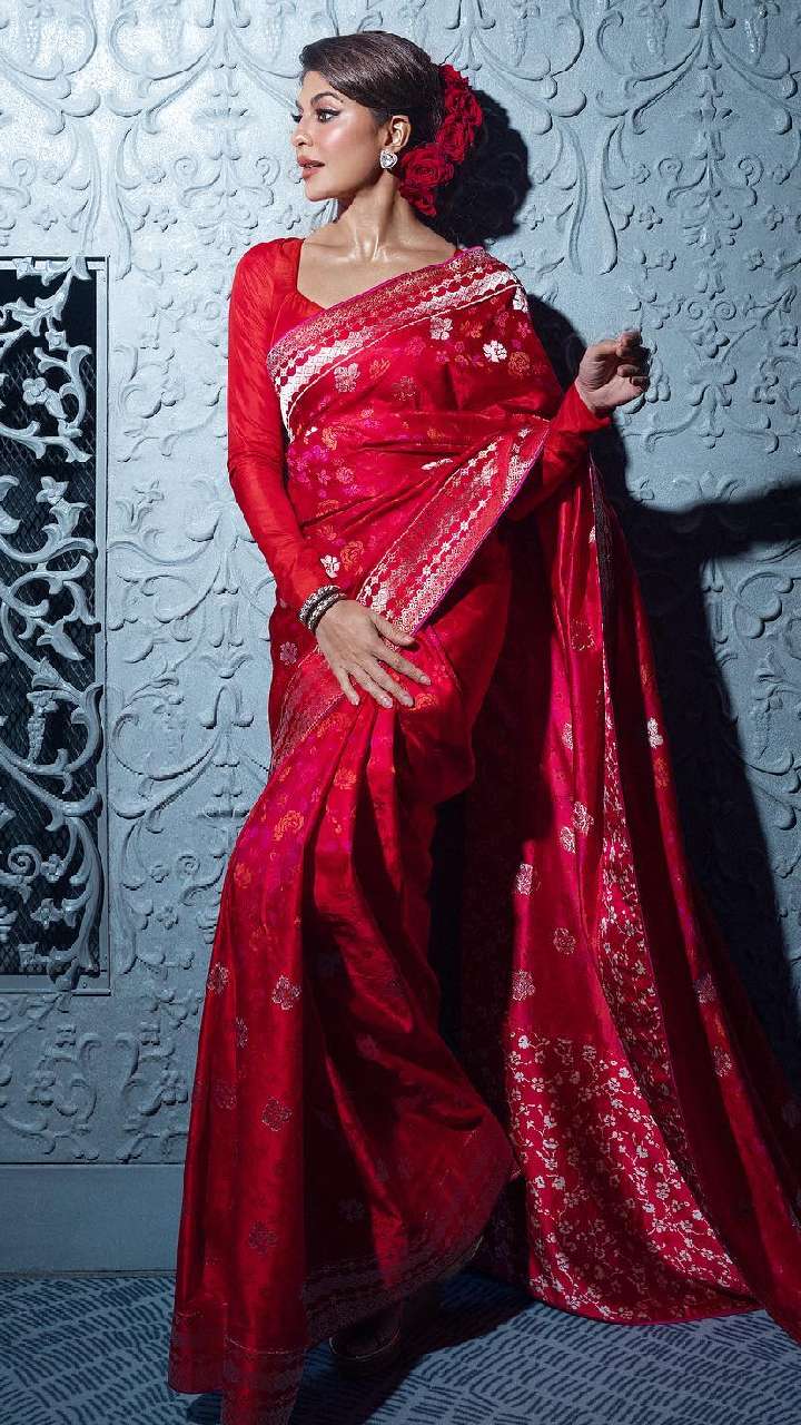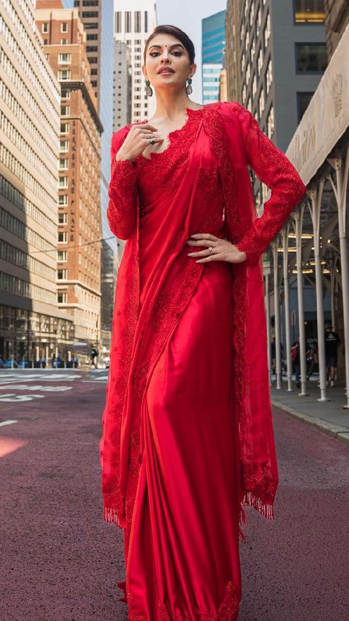 साड़ी एवरग्रीन फैशन है और महिलाएं इन्हें पहनने का मौका कभी नहीं छोड़ती हैं। अगर आप भी साड़ी में अपनी कर्वी फिगर फ्लॉन्ट करना चाहती हैं, तो जैकलीन की तरह साड़ी स्टाइल कर सकती हैं।