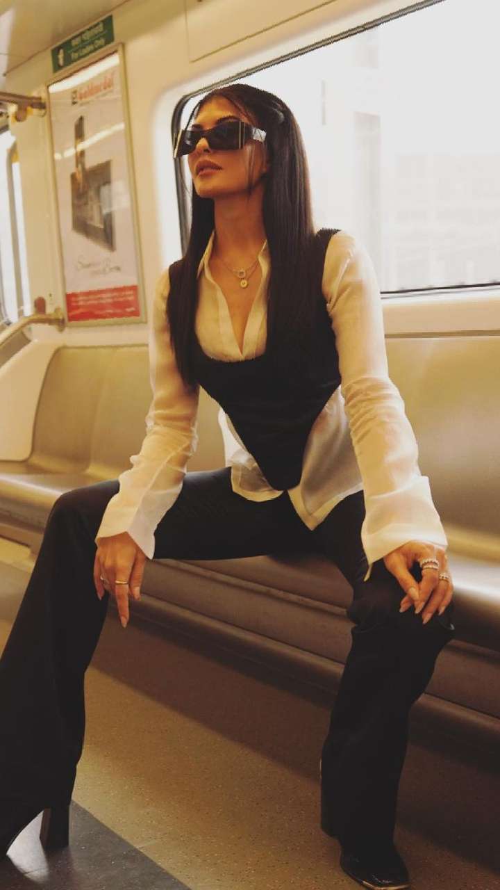 जैकलीन फर्नांडीज ने हाल में इंस्टाग्राम पर तस्वीरें शेयर की हैं। जिसमें एक्ट्रेस मुंबई मेट्रो' में सफर करती हुई नजर आ रही हैं।